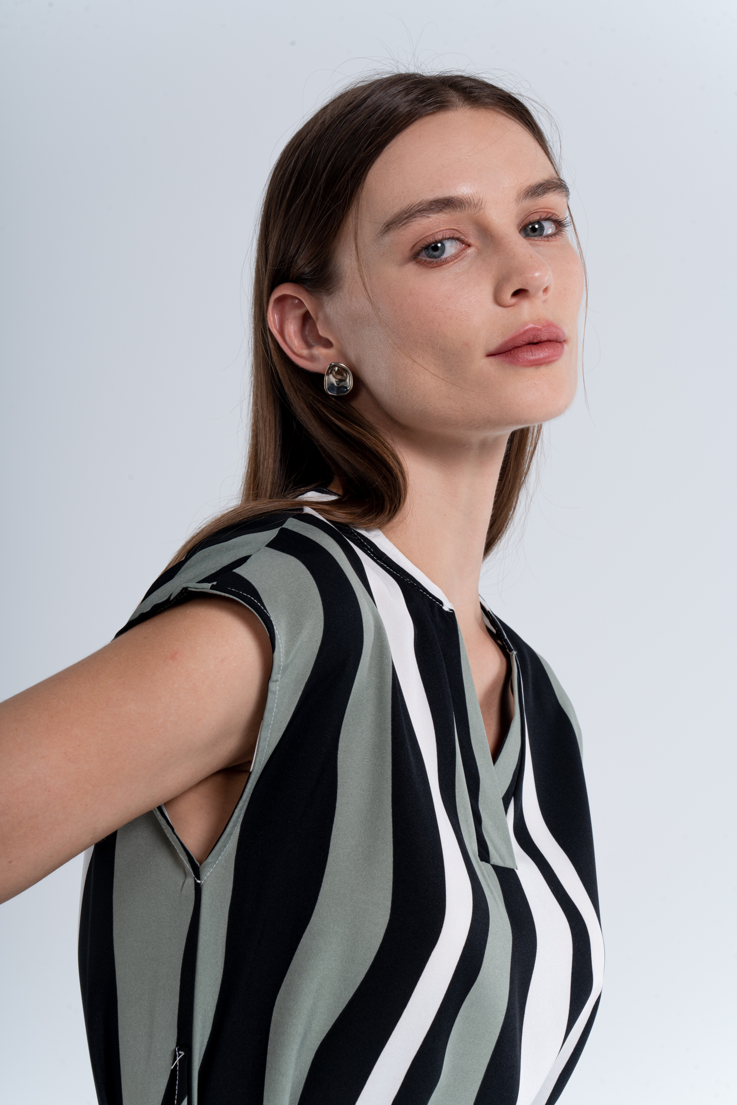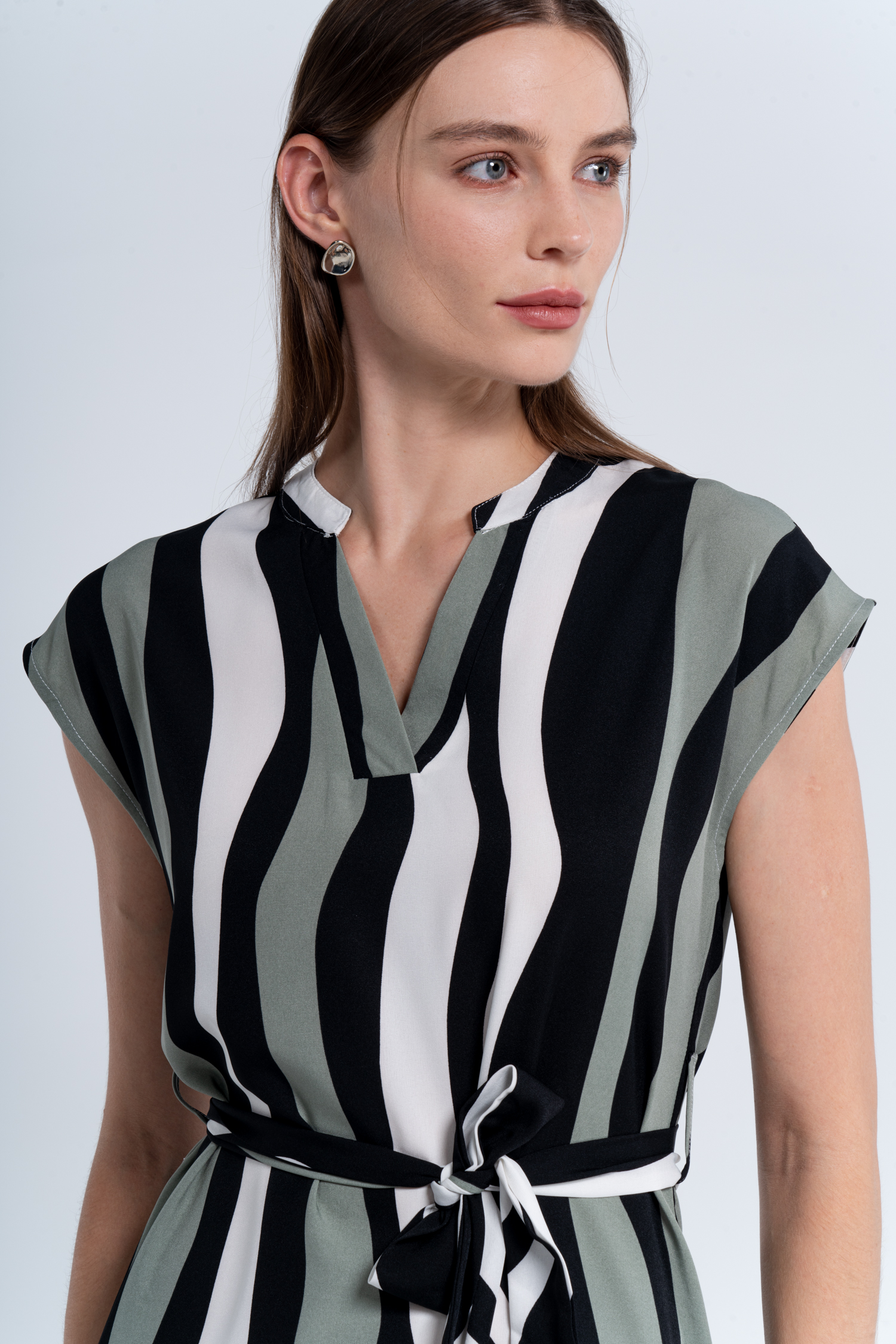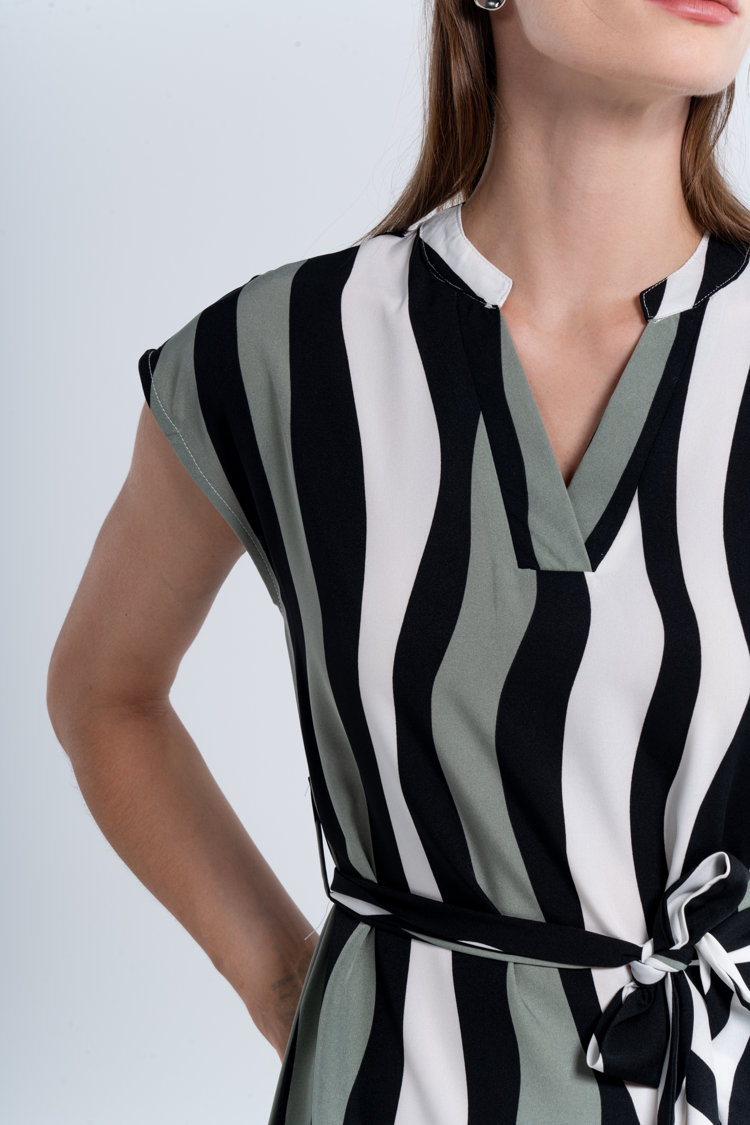 Irregular Striped Short Sleeve V-Neck Mini Dress