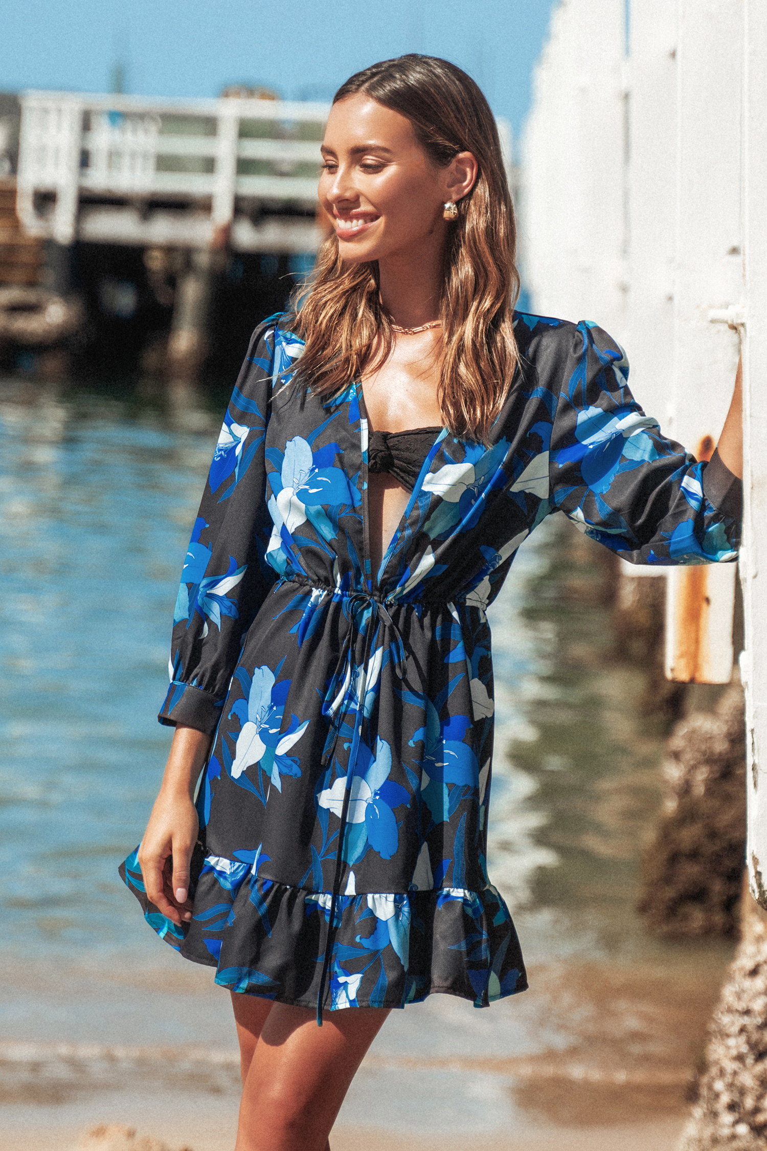 HomeKaitlynn Tropical Floral Drawstring Cover-Up Dress