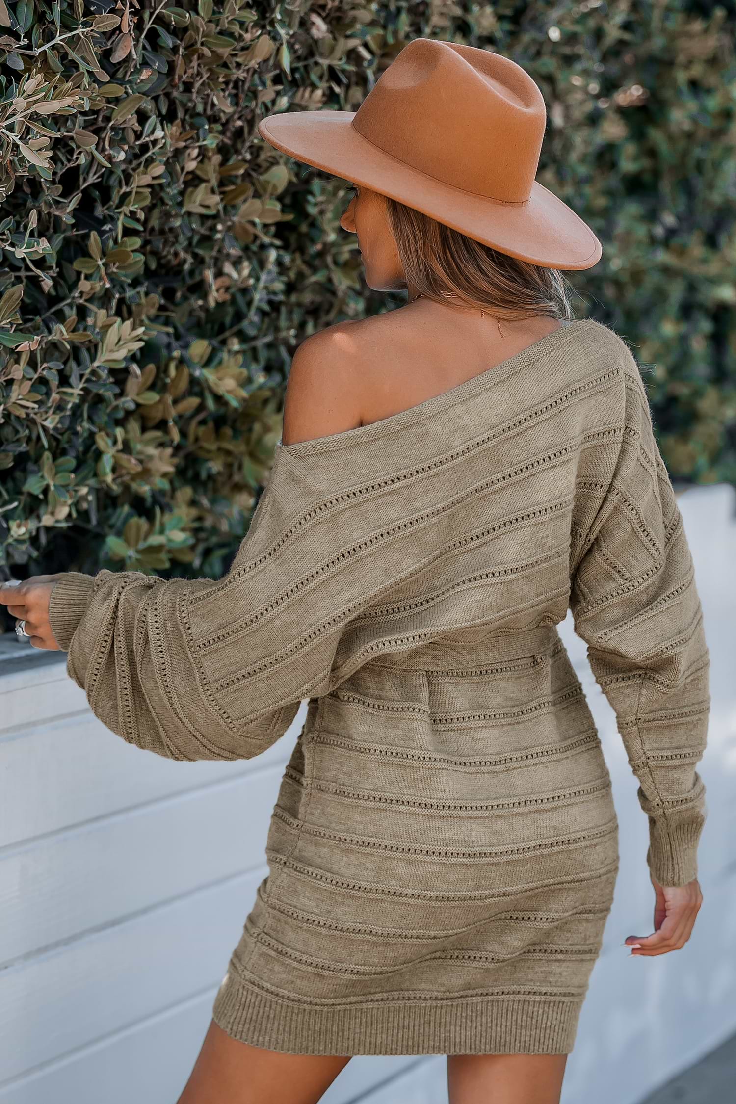 HomeKhaki Belted Dolman Sleeve Sweater Dress