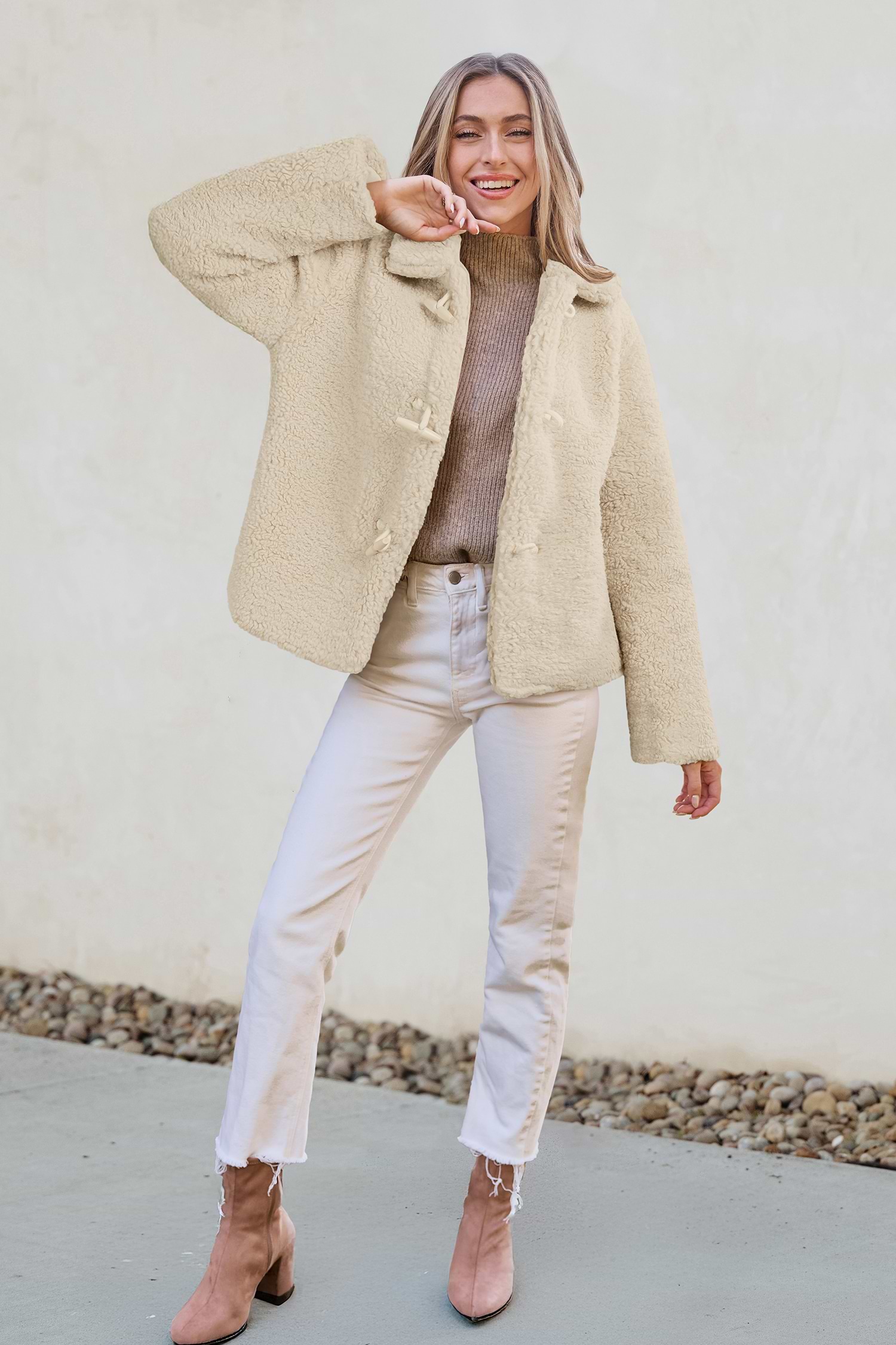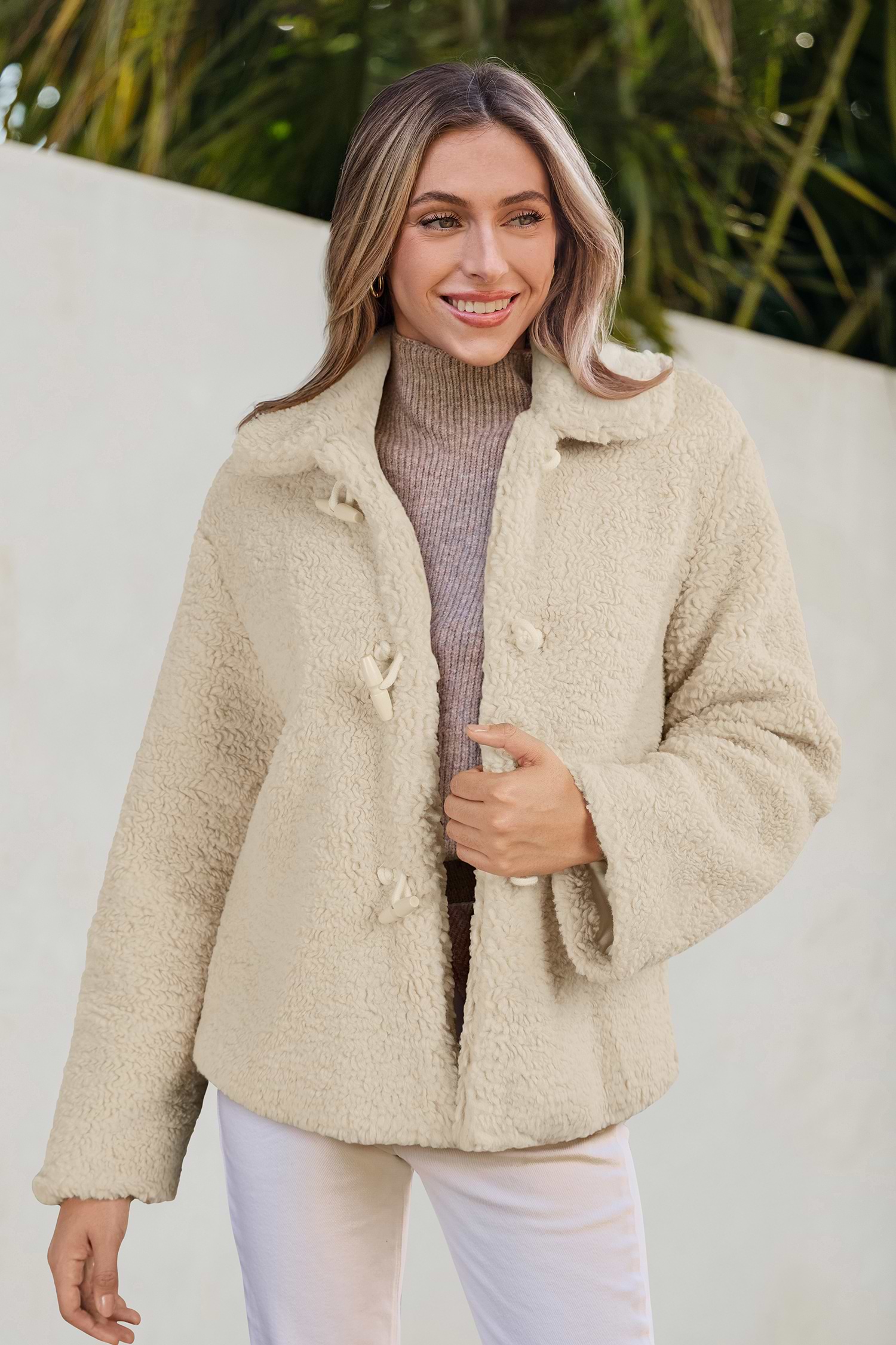 HomeKhaki Toggle Closure Boucle Knit Jacket