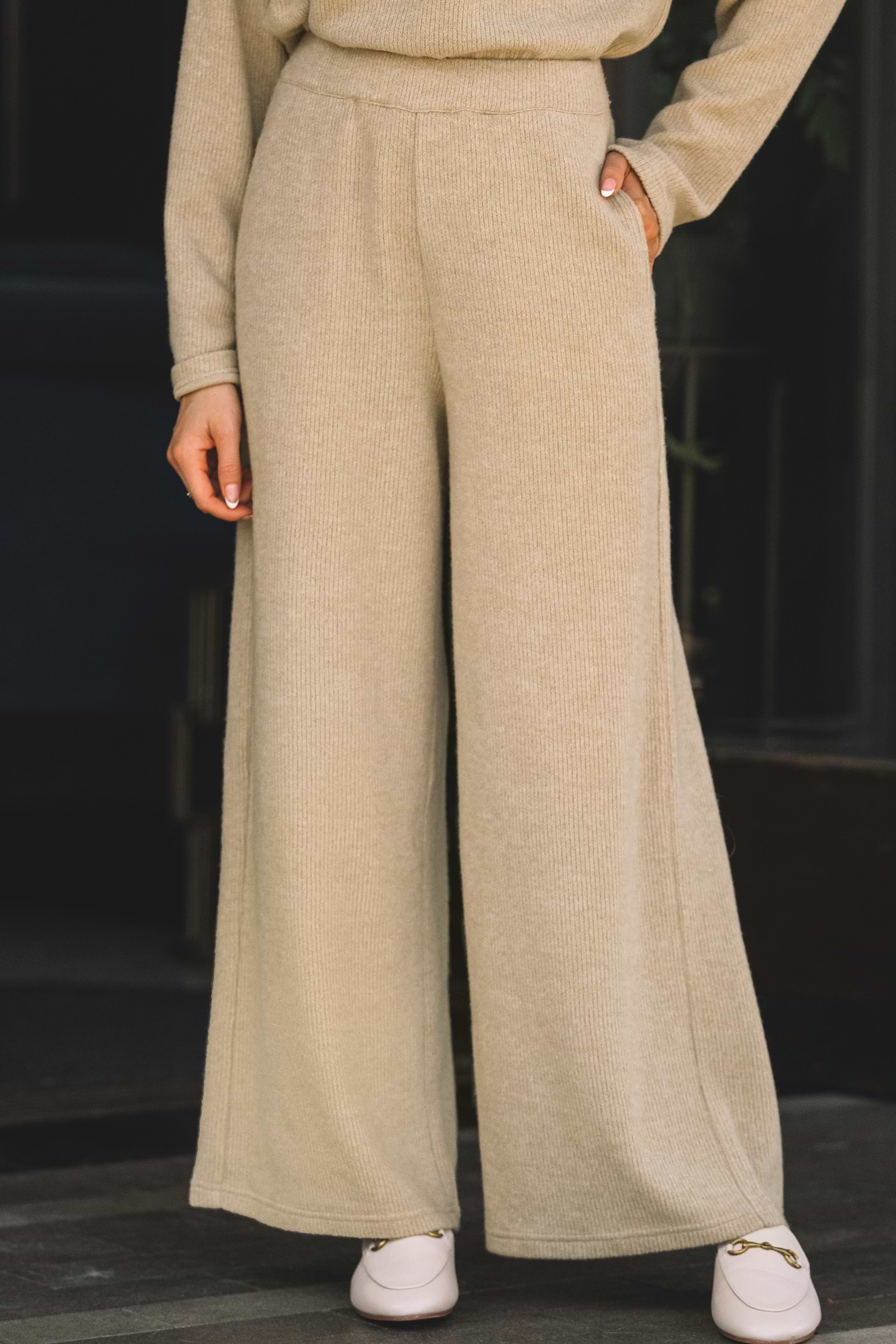 HomeKhaki Wide Leg Knit Pants