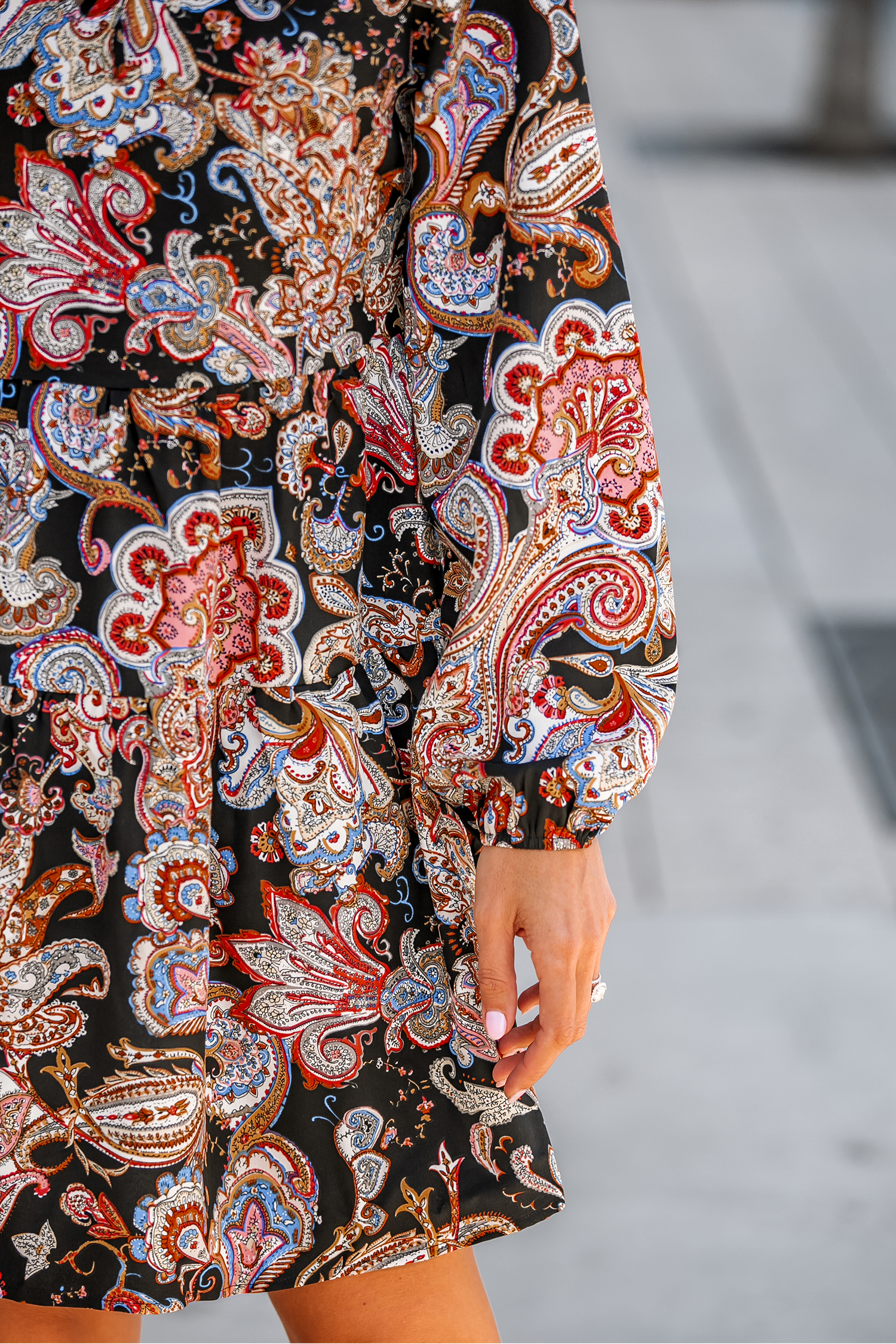 Lace Up V-neck Paisley Dress