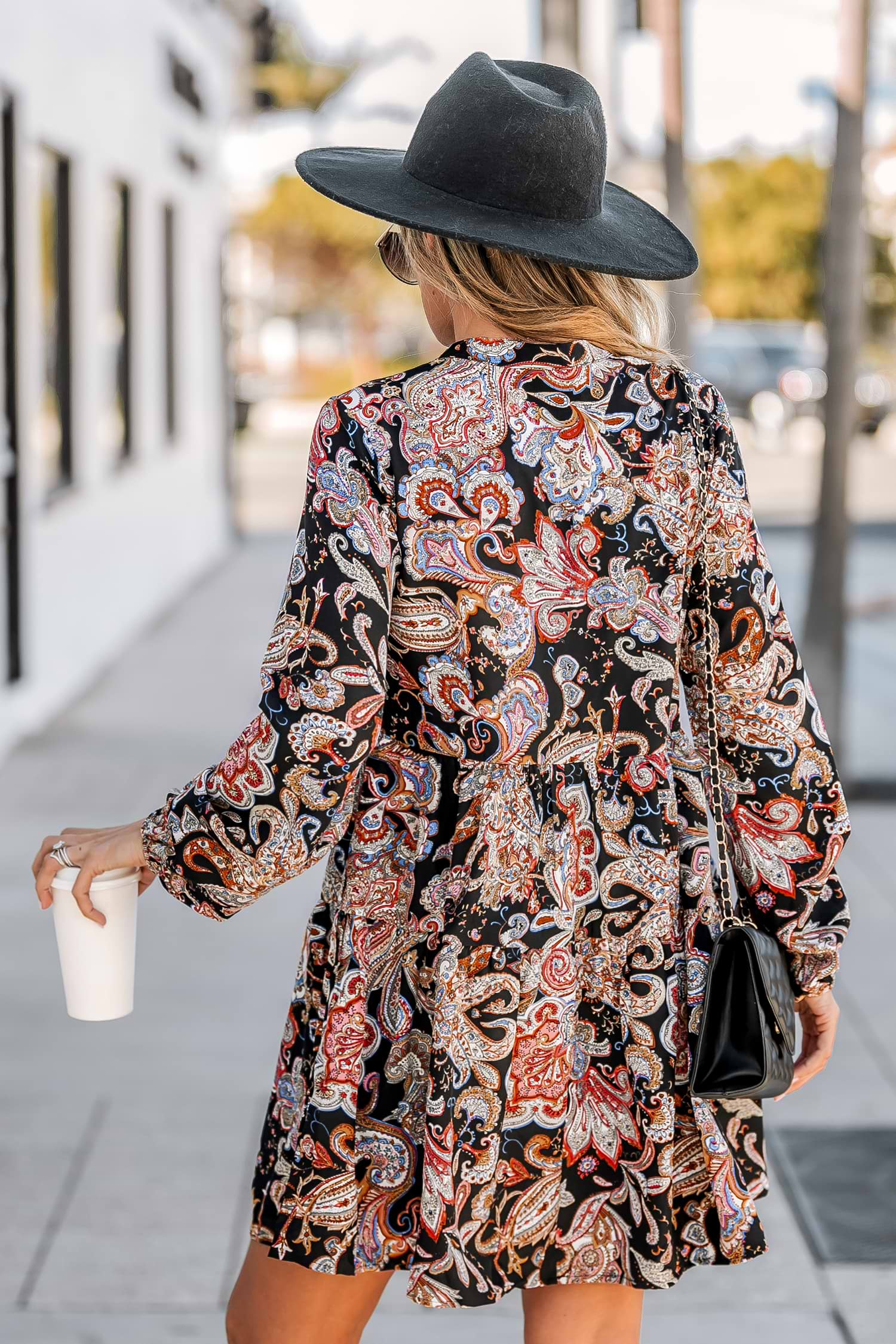HomeLace Up V-neck Paisley Dress