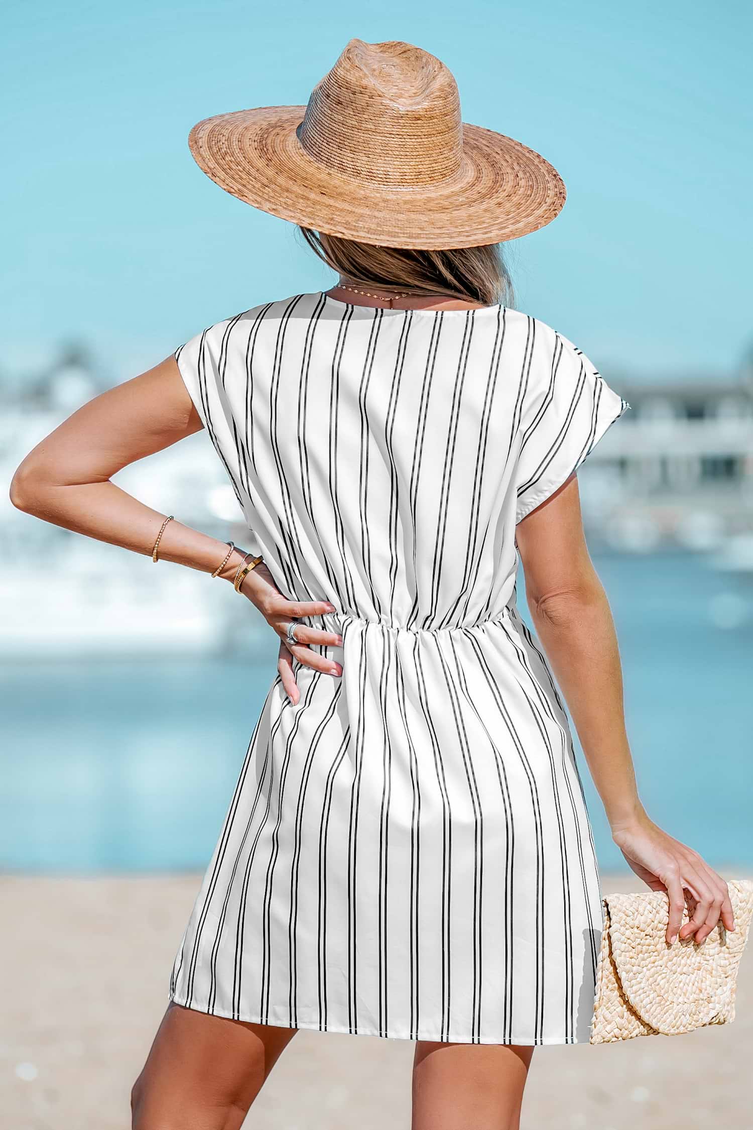 HomeLainey Striped Twist-Front Cover-Up Dress
