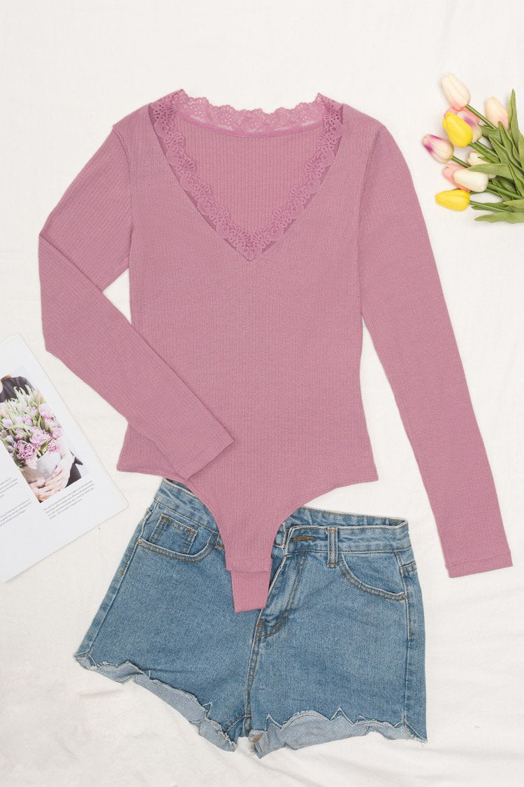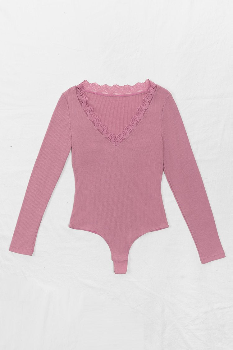 Leann Rib Lace Trim Long Sleeve Bodysuit