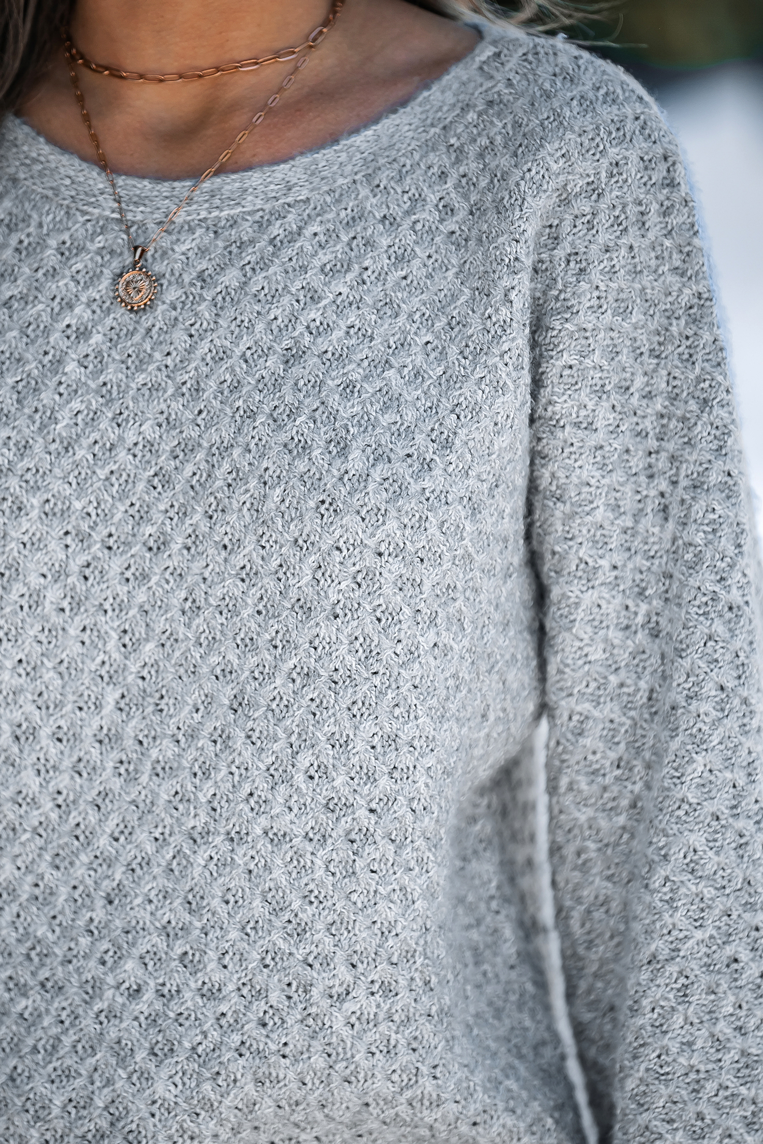 HomeLight Grey Round Neck Long Sleeve Sweater