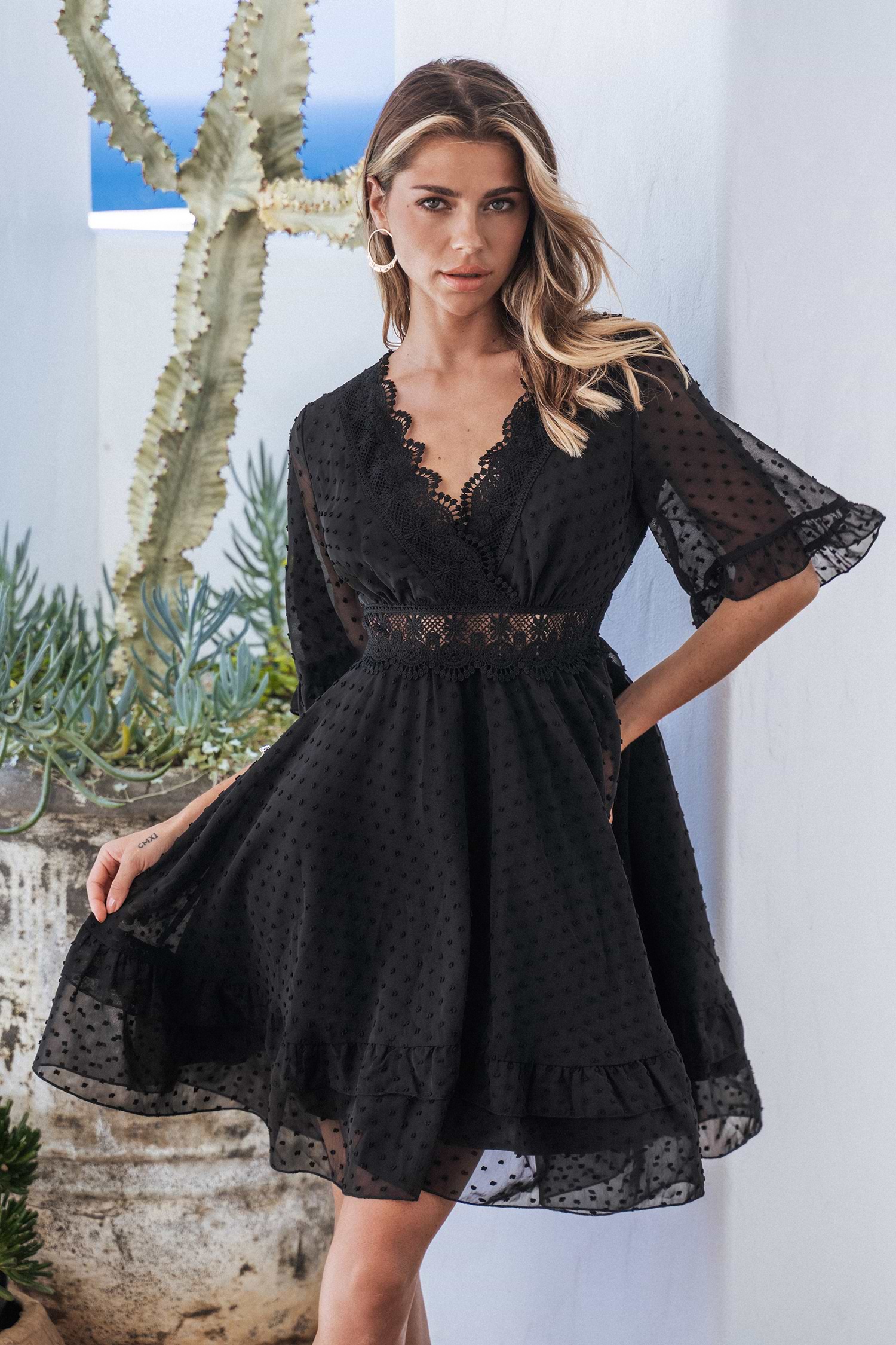 Lizeth Clip Dot Lace V-Neck Mini Dress