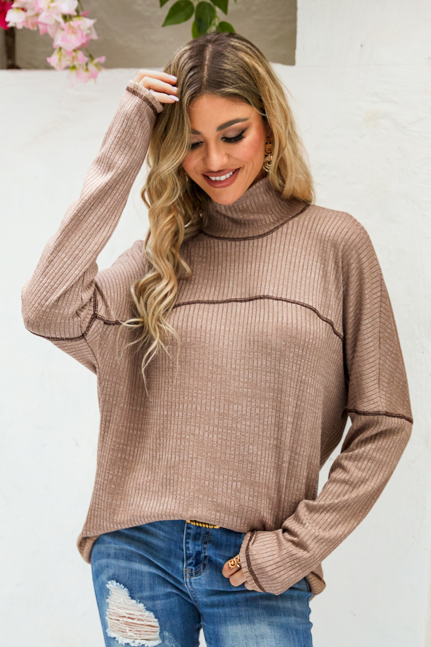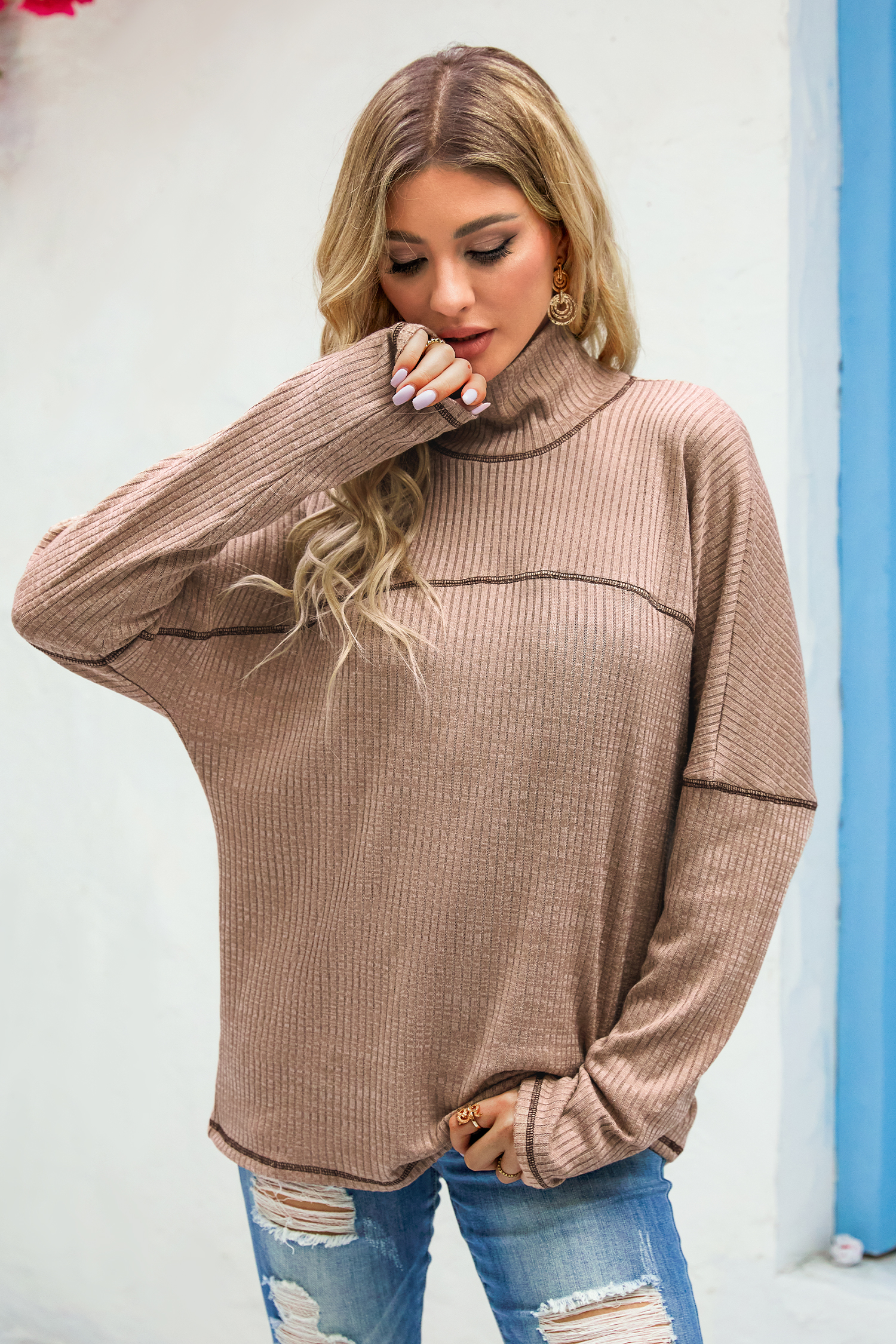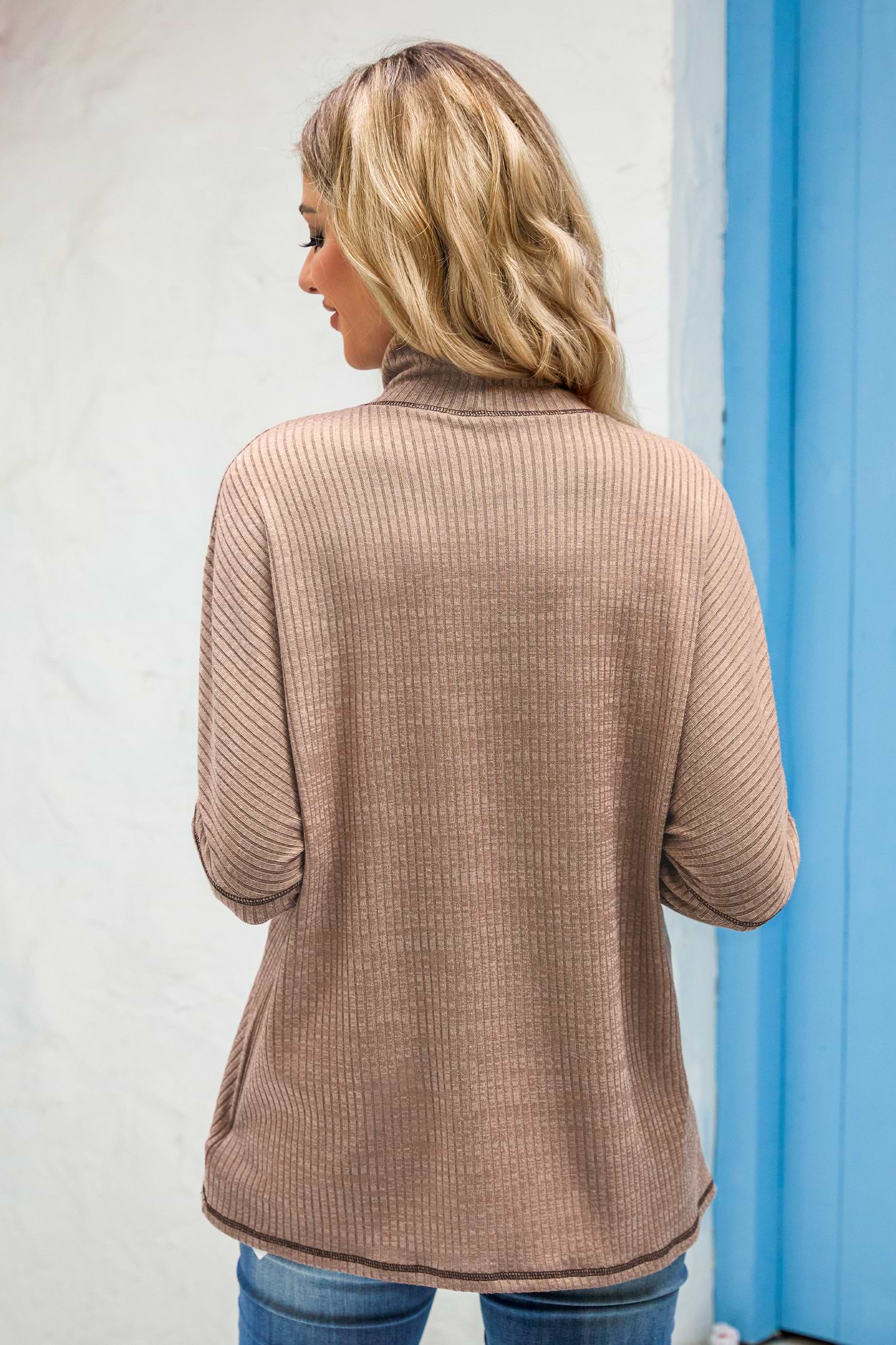 HomeLong Sleeve Turtleneck Rib-Knit Top