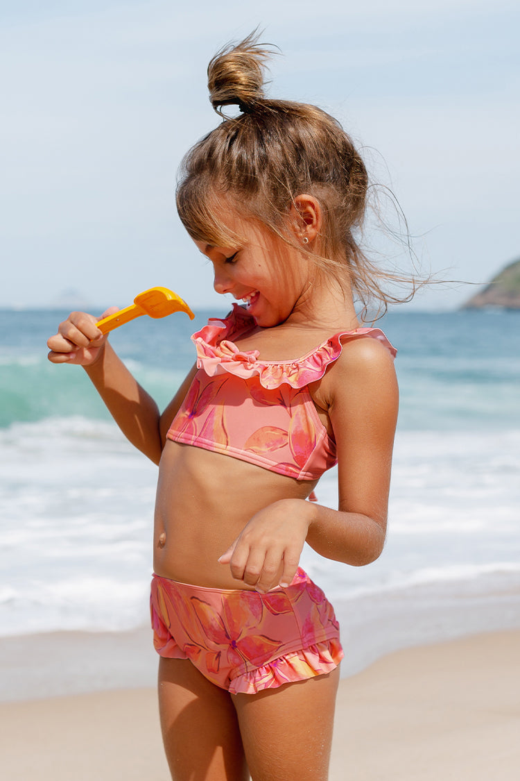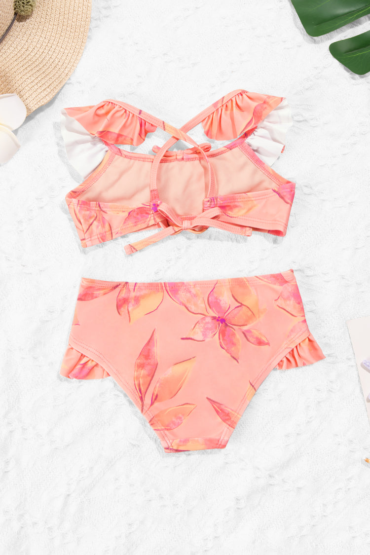 Girls Ruffled Tie Back Bralette & Hipster Bikini Set