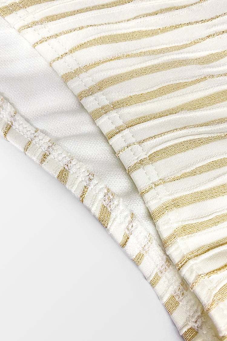 HomeLurex Texture Deep Plunge White Halter One Piece Swimsuit