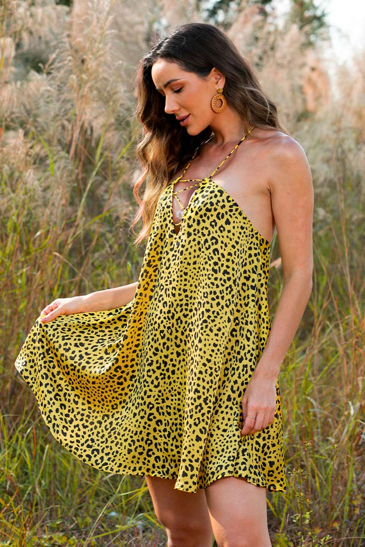 Classic Leopard Print Cross Back Midkini & High Waist Set