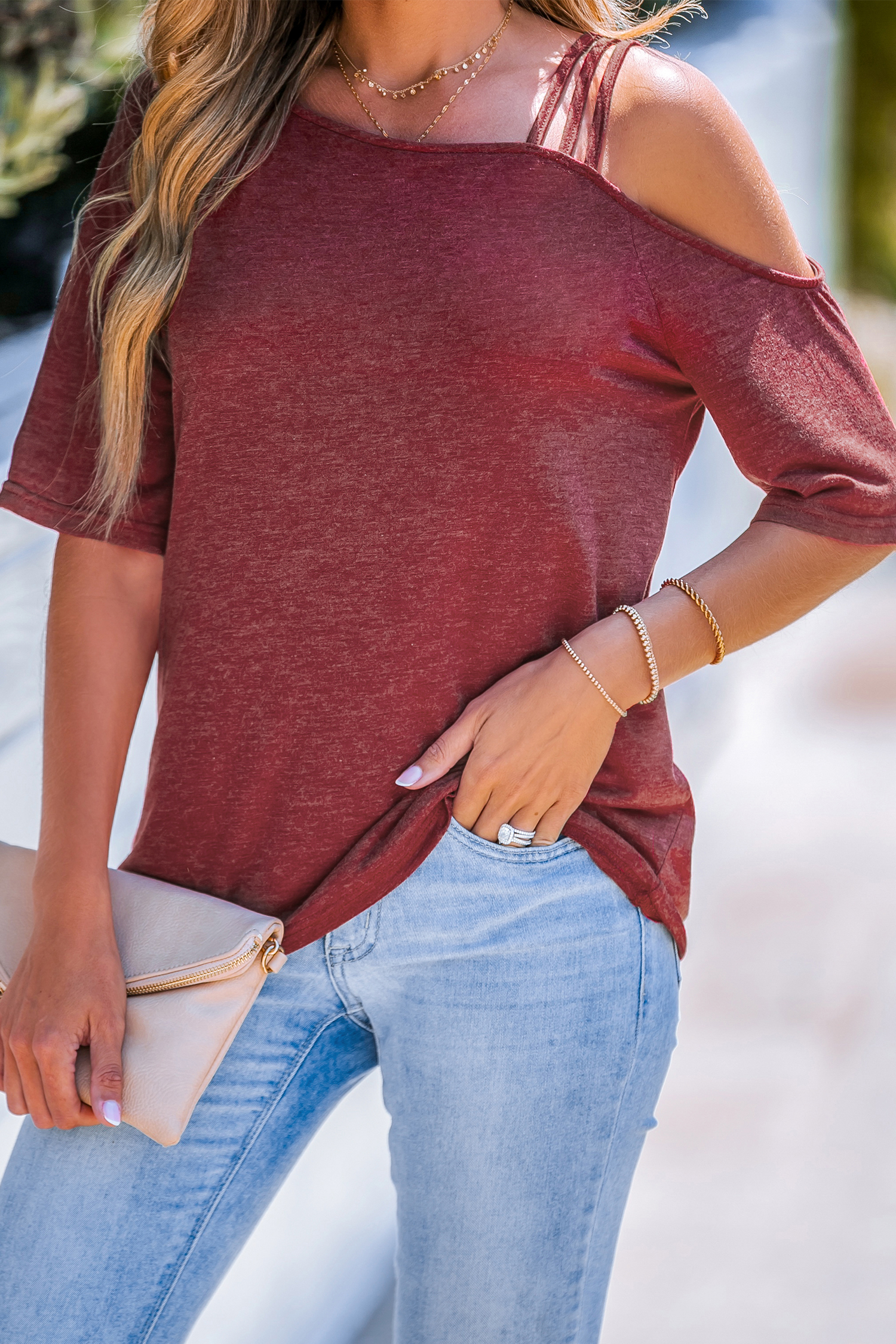 Maroon One-Shoulder Tee