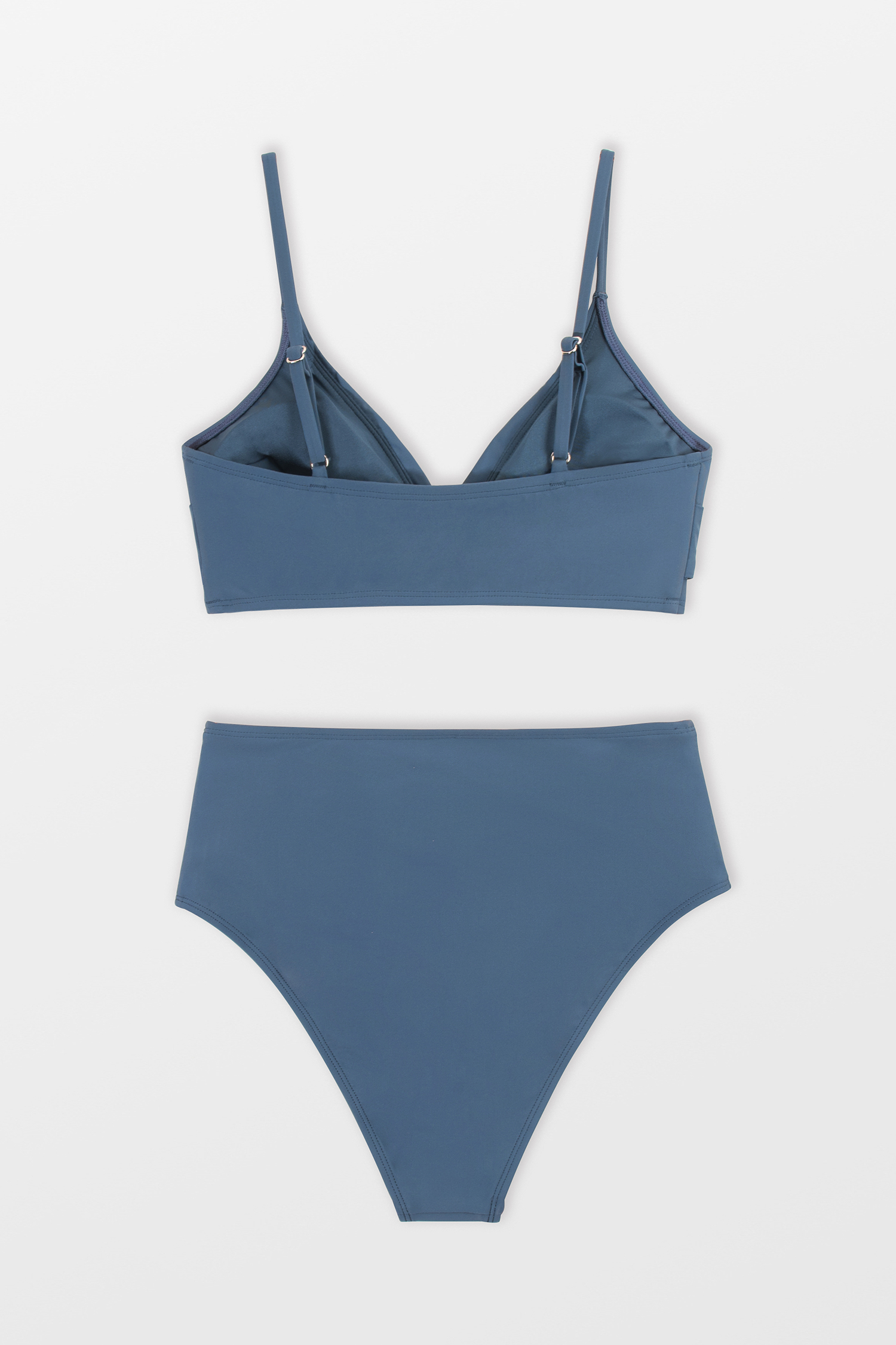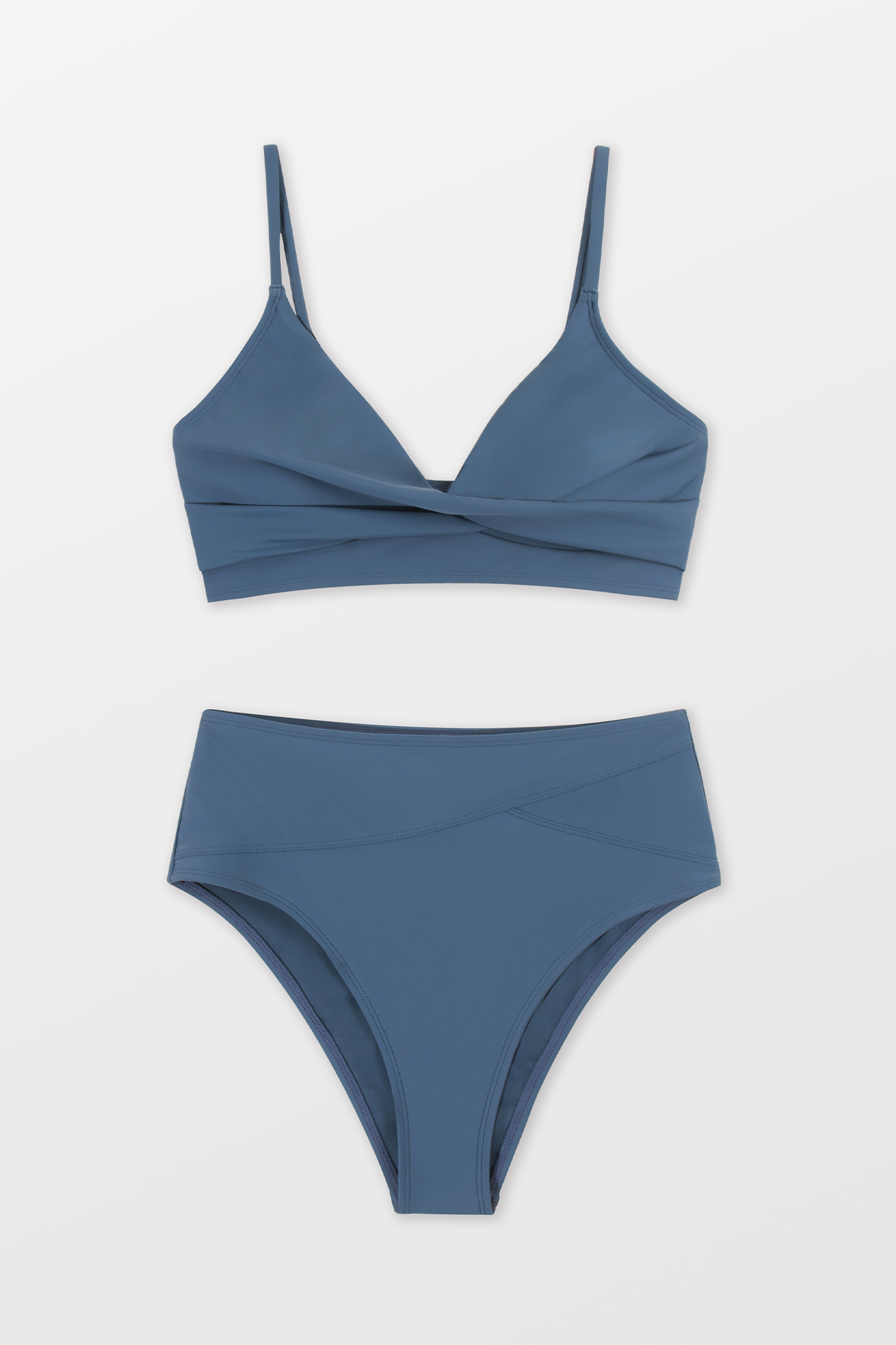 Marsala Wrap Blue Front Bralette & Asymmetric High Waist Bikini Set