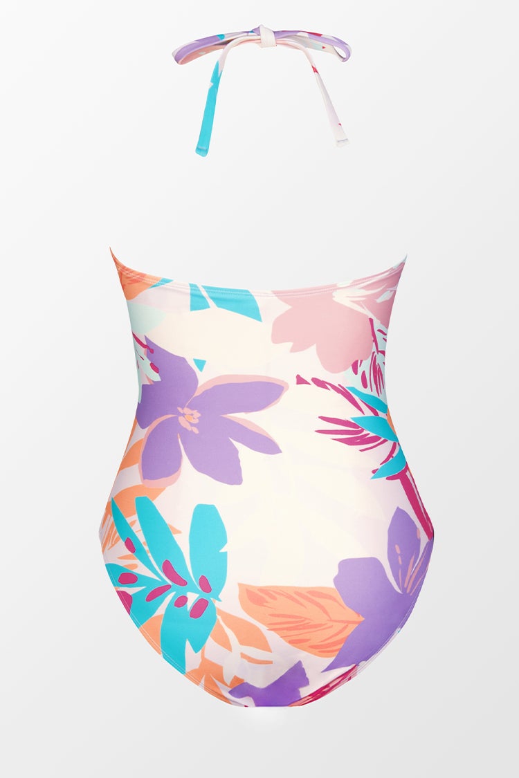 HomeMulti Spring Double Ring Front Bandeau One Piece Swimsuit