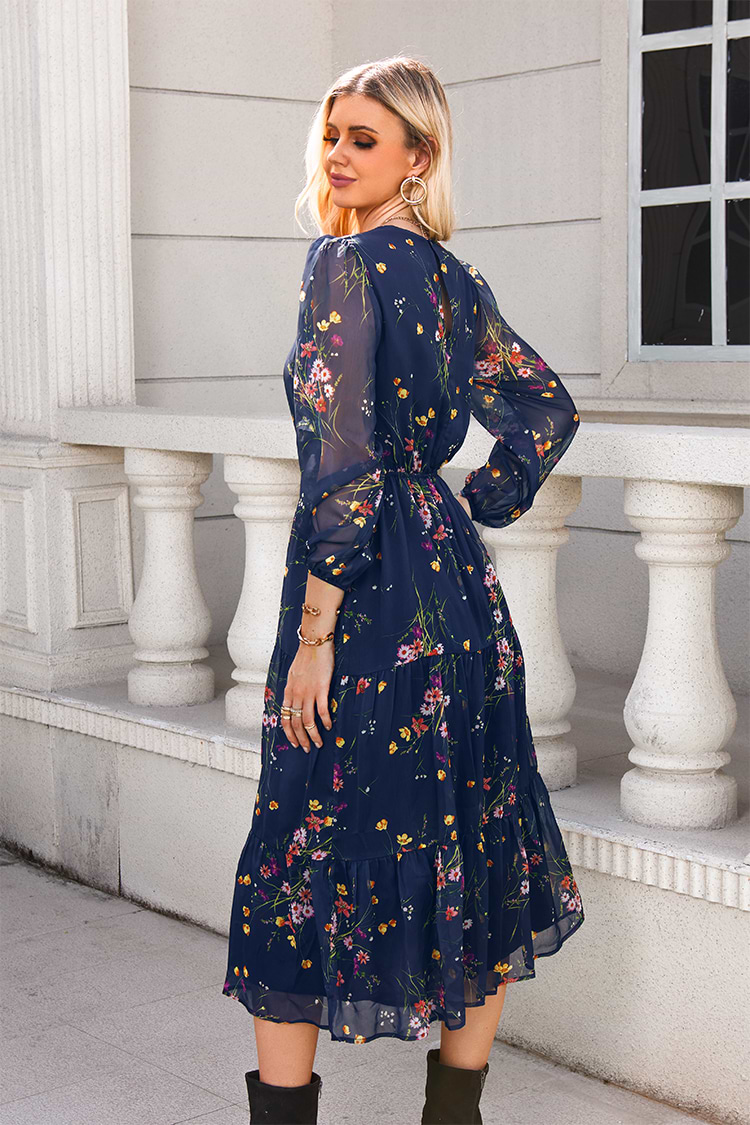 HomeNela Ditsy Floral Print Cutout Maxi Dress