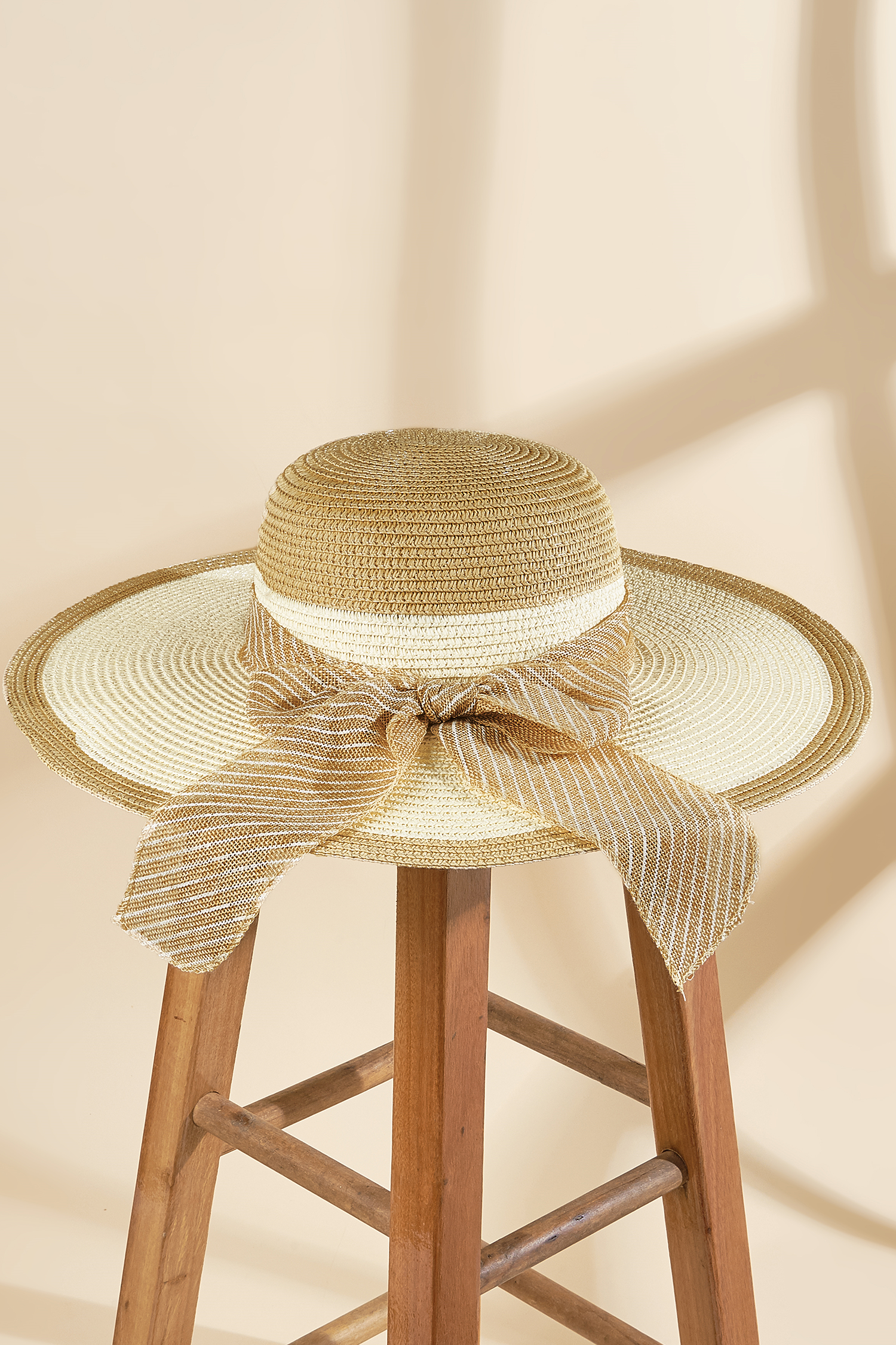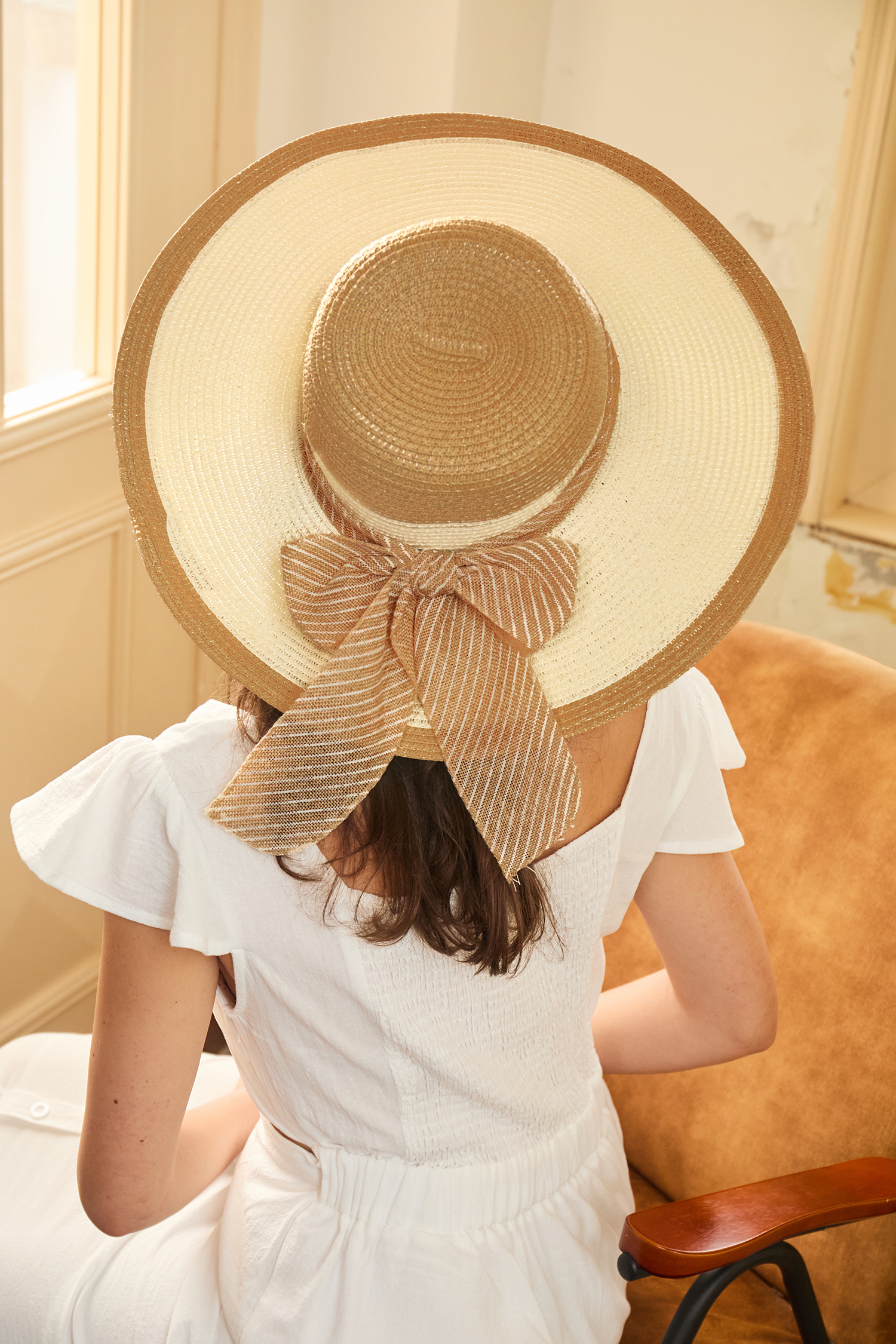 HomeNeutral Colorblock Wide Brim Straw Hat