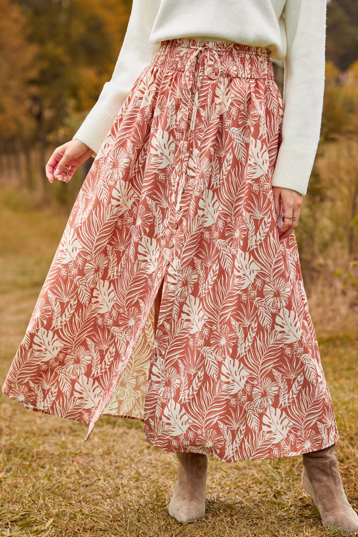HomeNeutral Tropical Split Hem Maxi Skirt