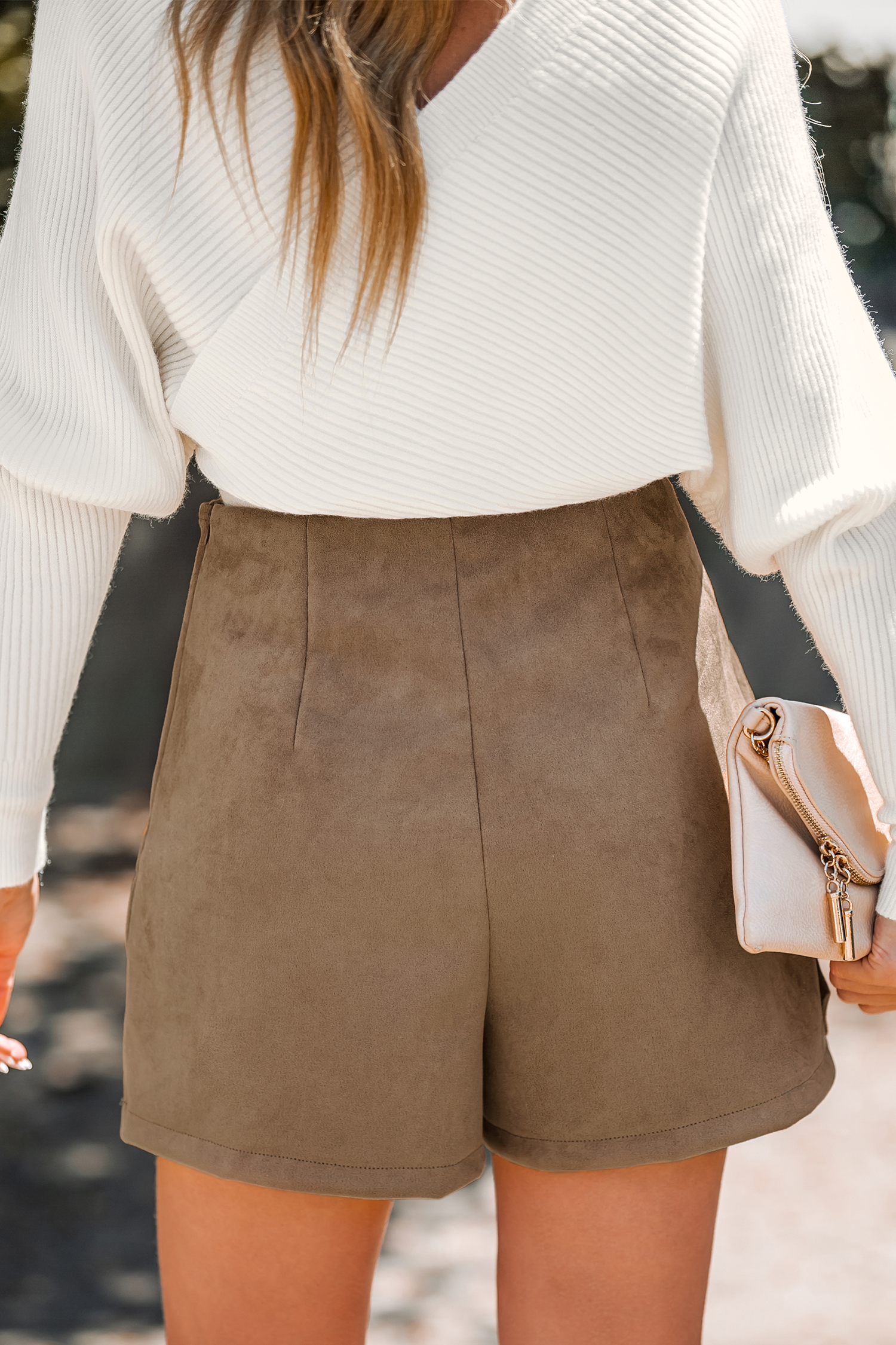 O-Ring Belt Faux Suede Wrap Shorts