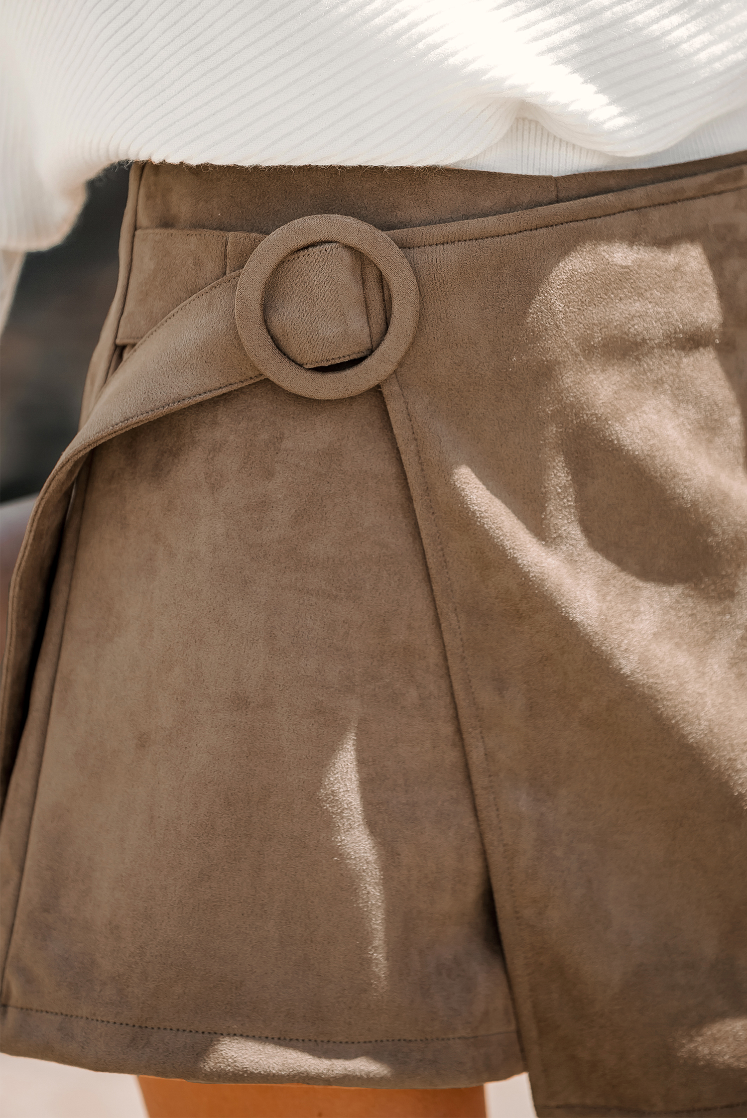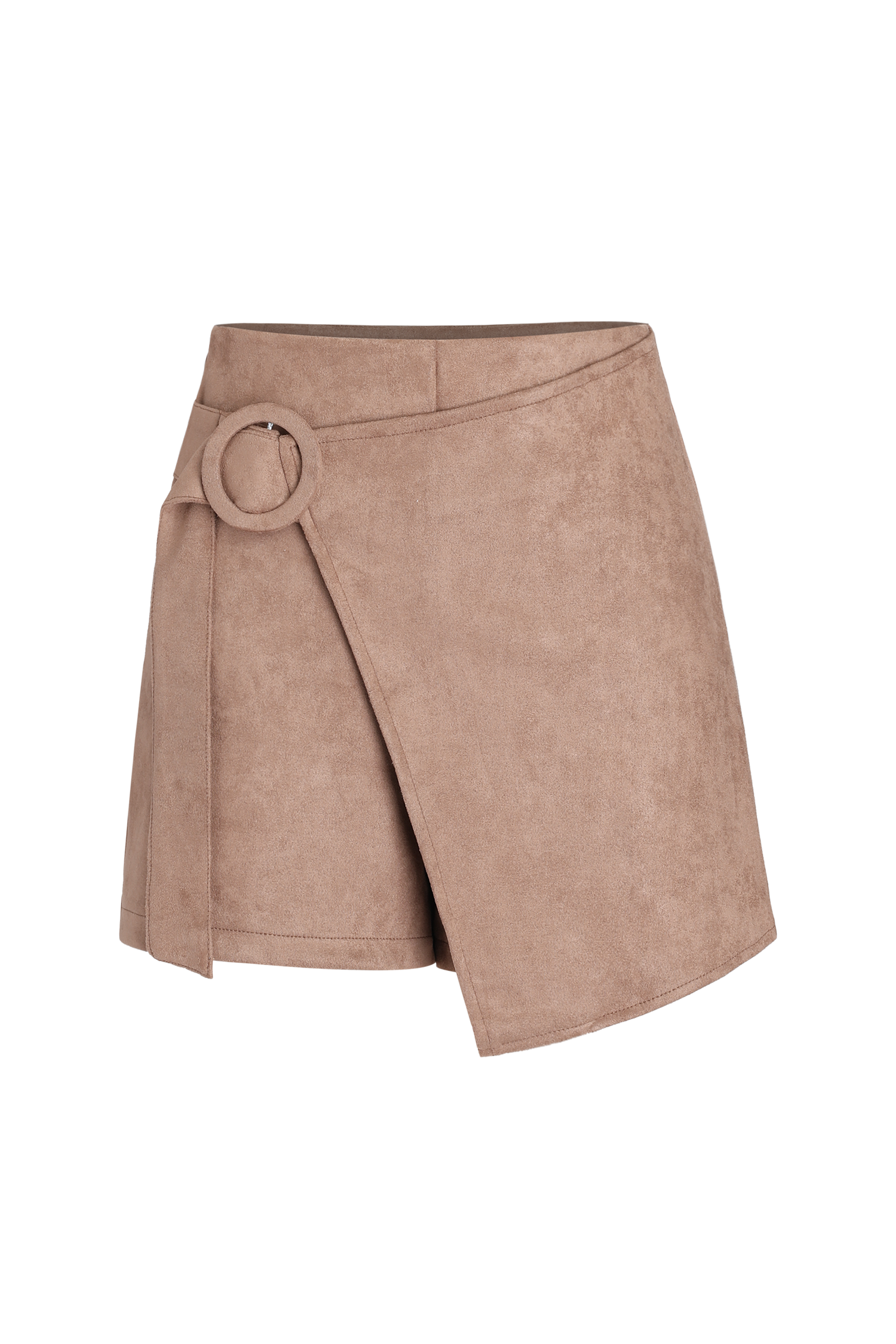 HomeO-Ring Belt Faux Suede Wrap Shorts