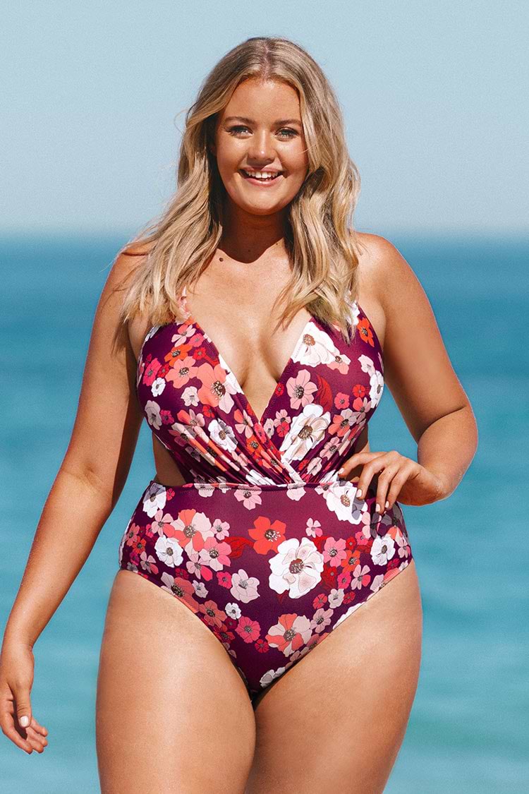Olivia Floral Cutout Plus Size One Piece Swimsuit