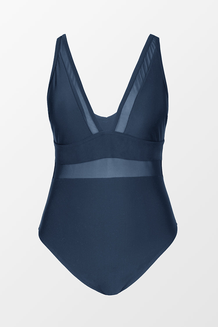 HomeOmniscient Navy Solid Wrap Front Plus Size One Piece Swimsuit