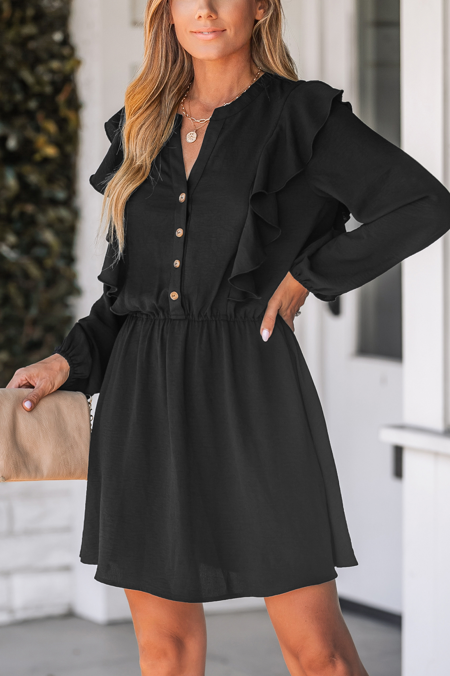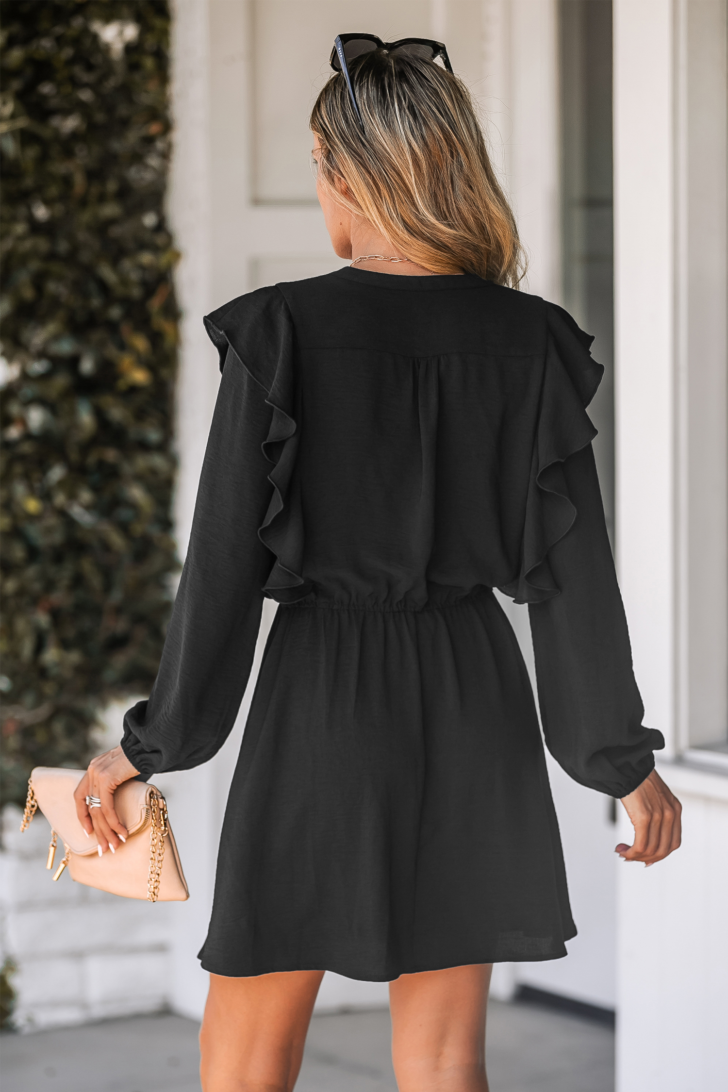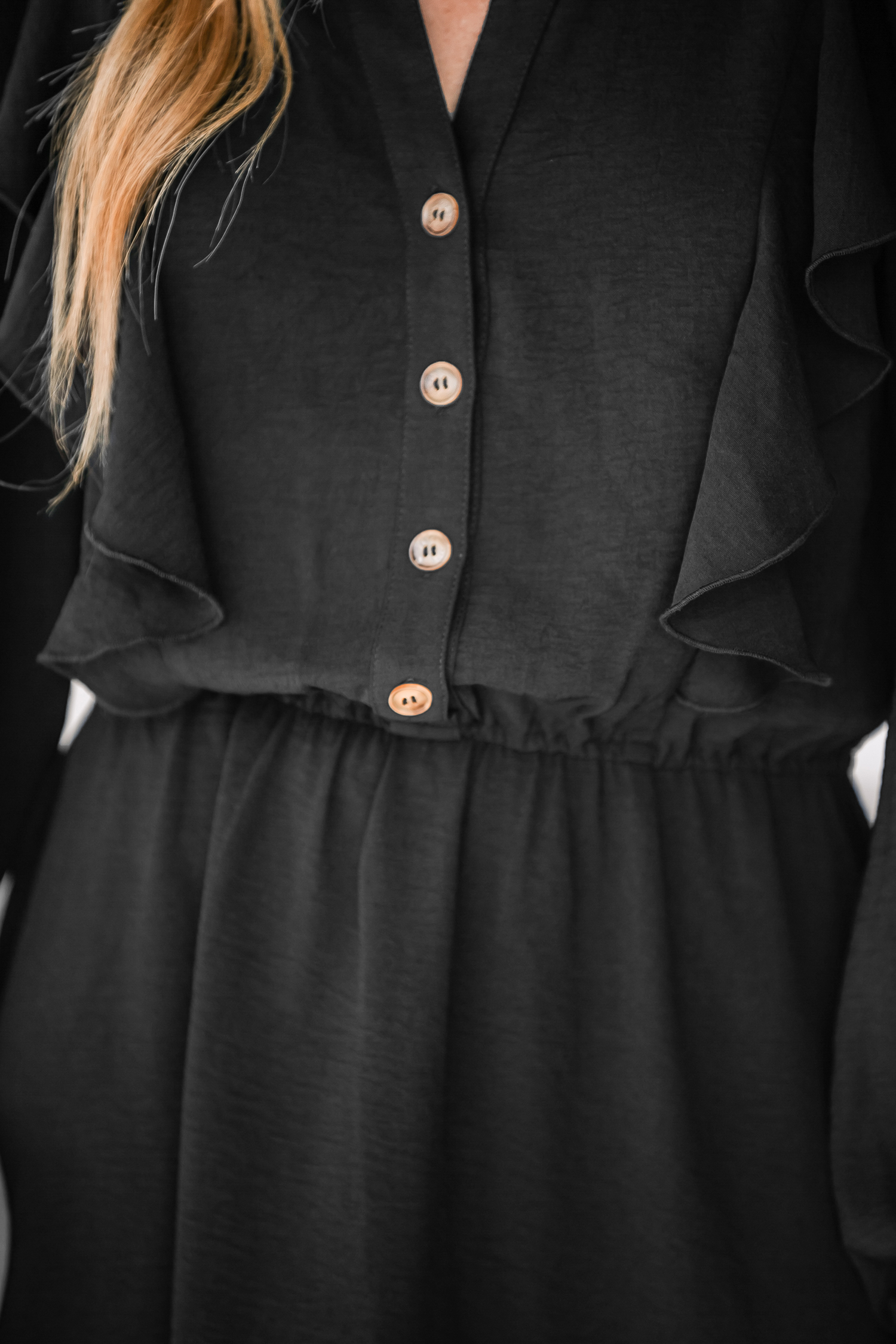 x JoJo Midnight Black Long Sleeve Asymmetrical Dress