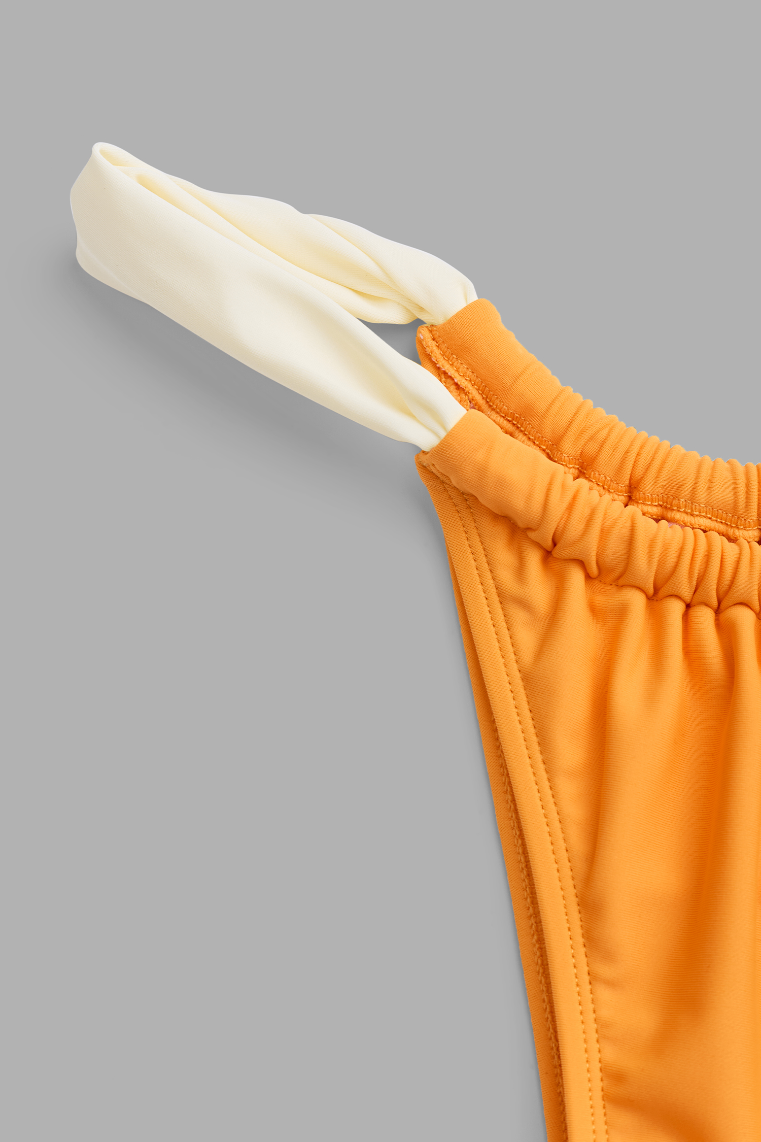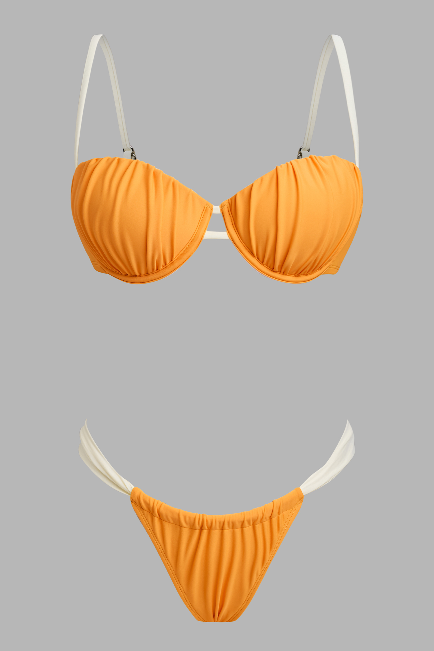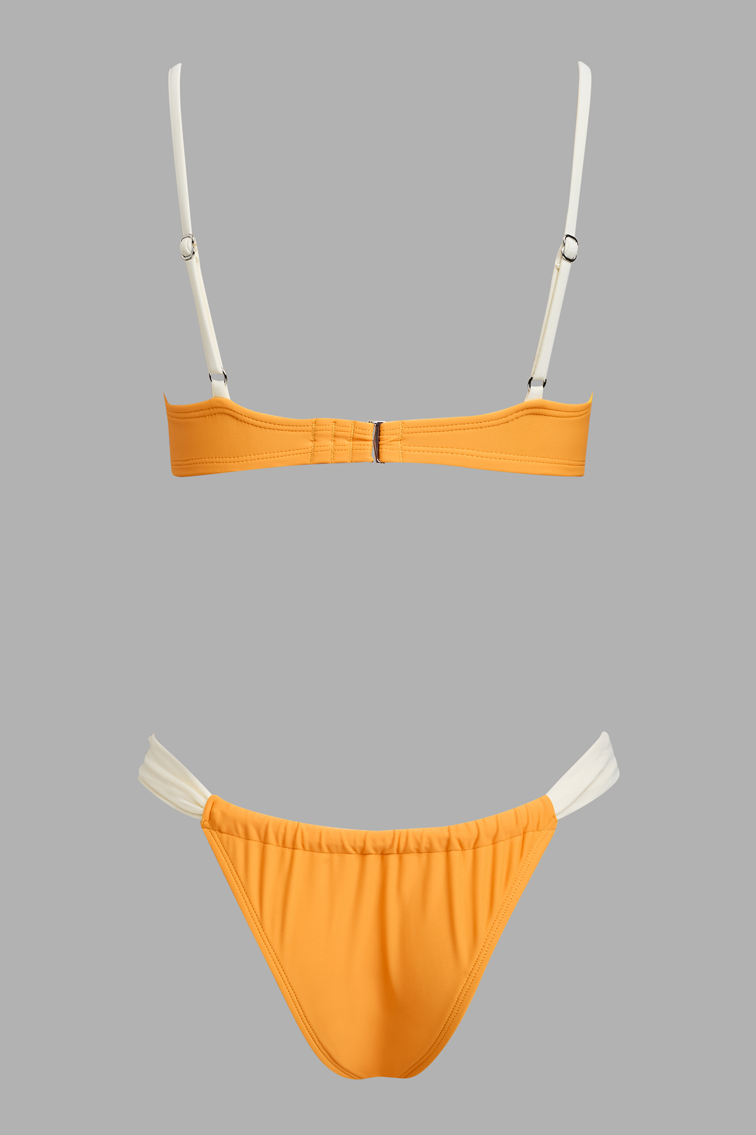 The Orange Gelato Bikini Set brings the sweetness of summer to your wardrobe! With a flattering sweetheart neckline, adjustable straps, and underwire for high bust support, it combines style and comfort. The extra high-cut leg and cheeky bum coverage give this set a bold, modern edge.