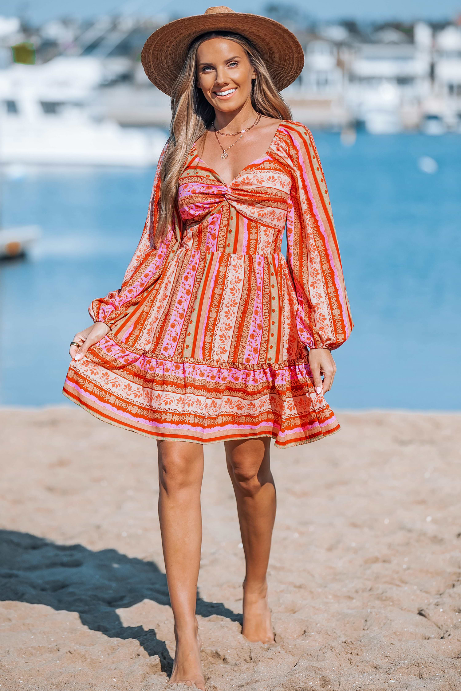HomePaisley Flounce Blouson Sleeve Mini Dress