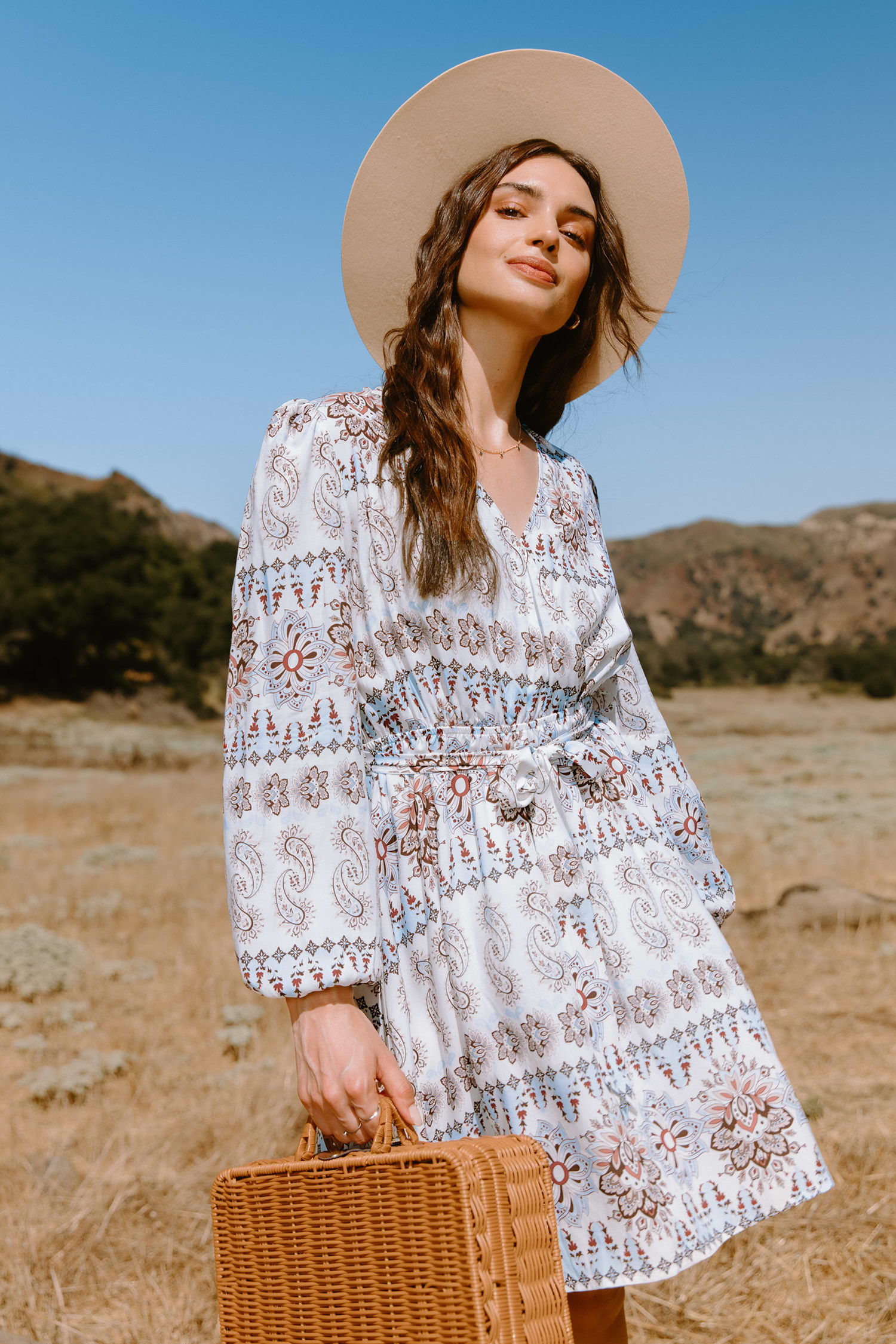 HomePaisley Surplice Blouson Sleeve Mini Dress