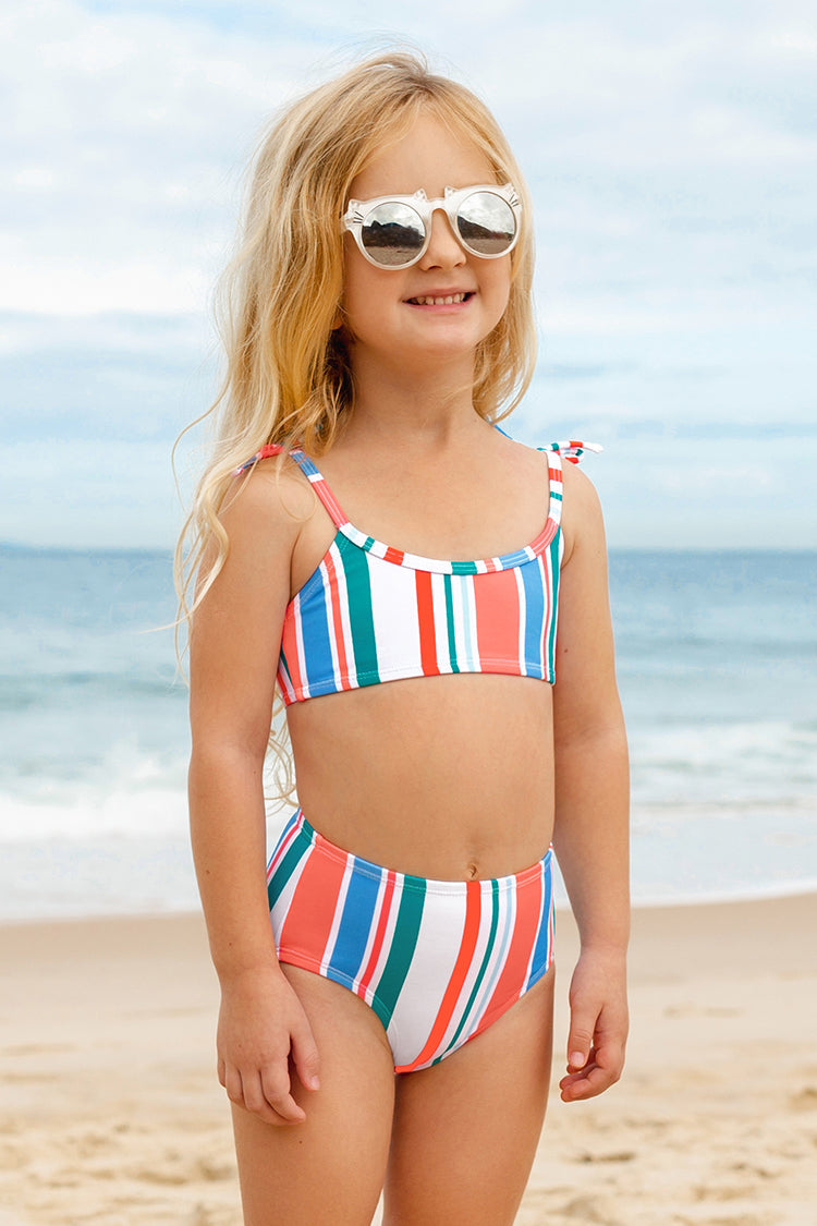 Girls Palm Beach Night Tie Strap Bralette & High Waist Bikini Set