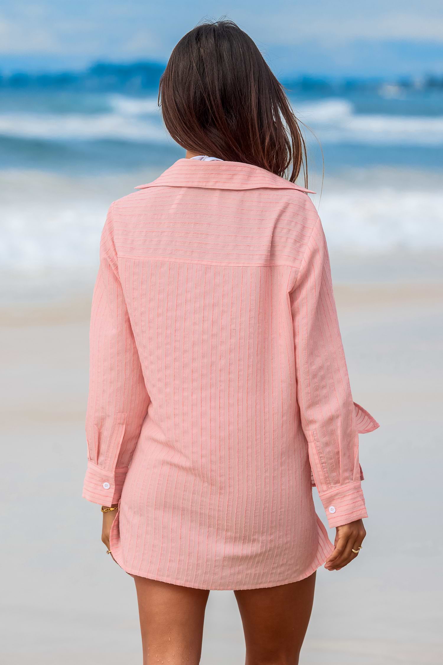 Pink Collared Open Front Long Sleeve Cover-Up Top