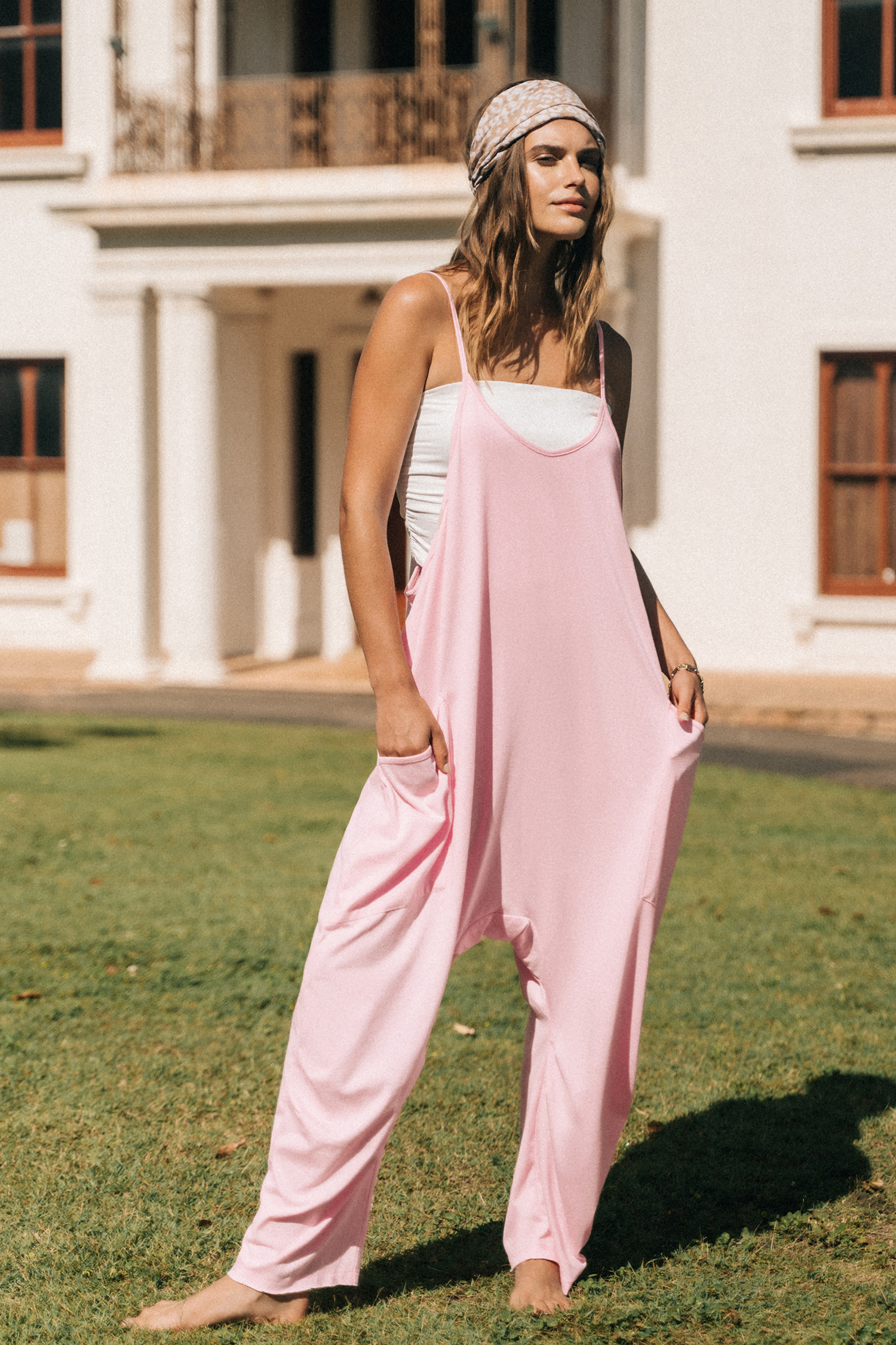 HomePink Sleeveless Patch Pocket Drop-Crotch Jumpsuit