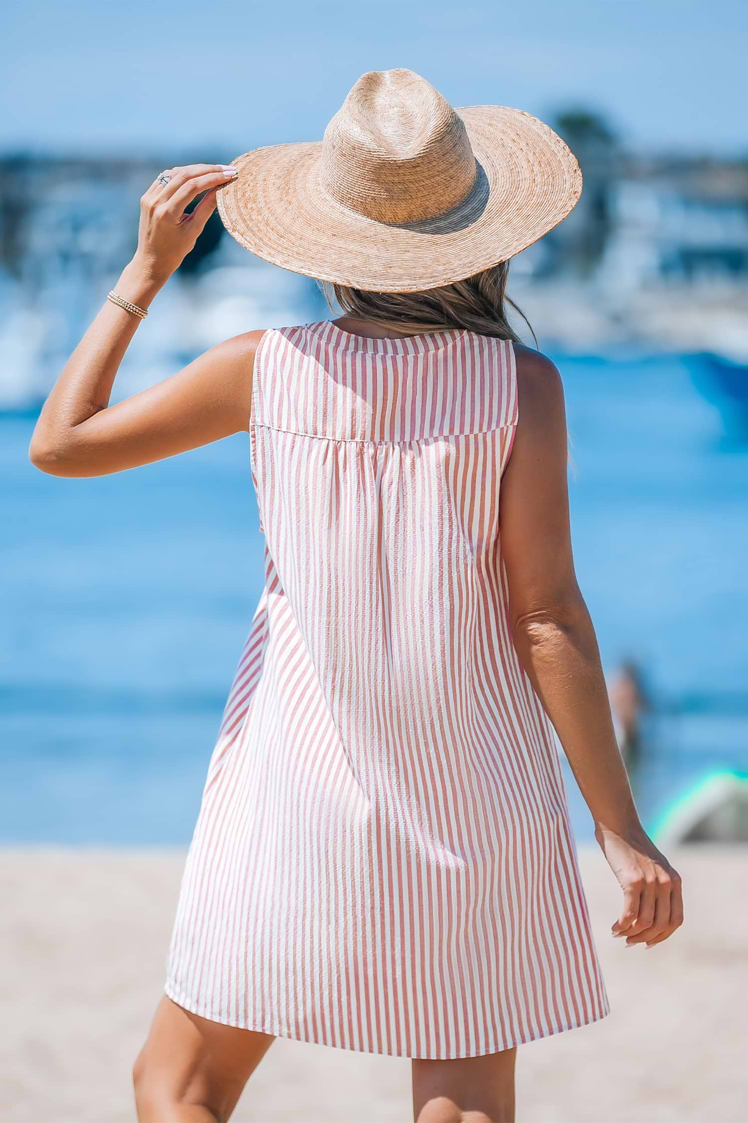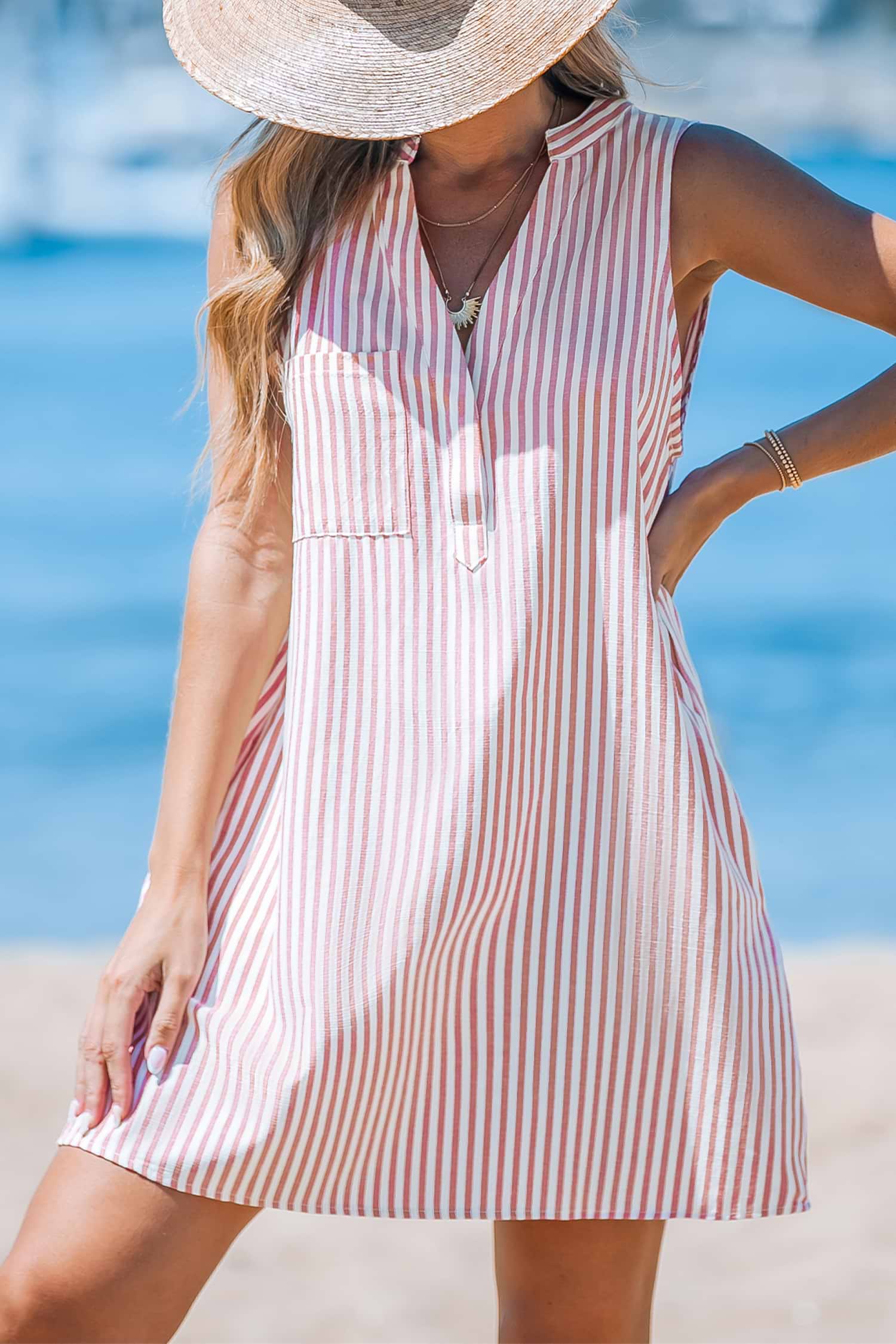 HomePink Stripe Sleeveless V-Neck Mini Dress