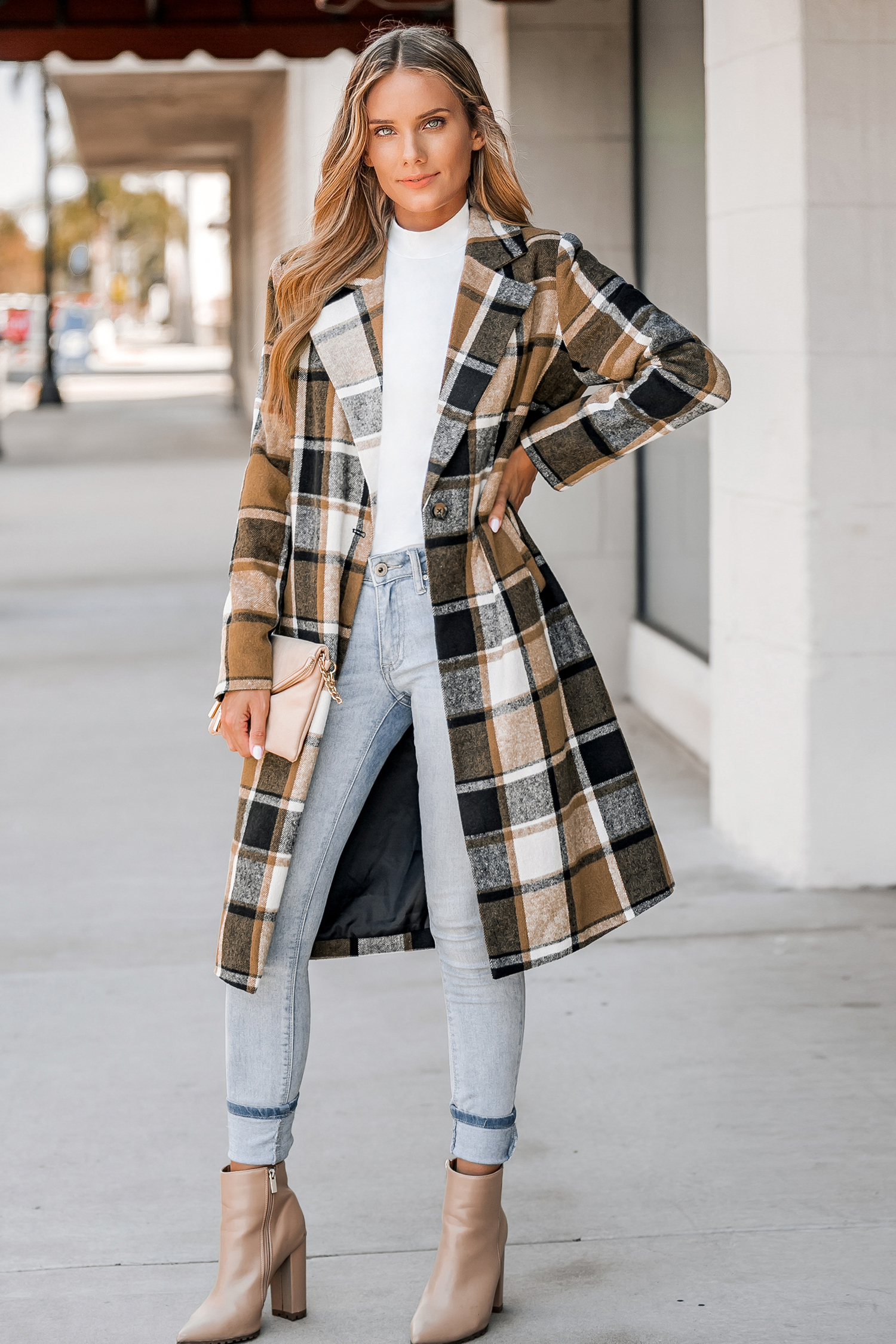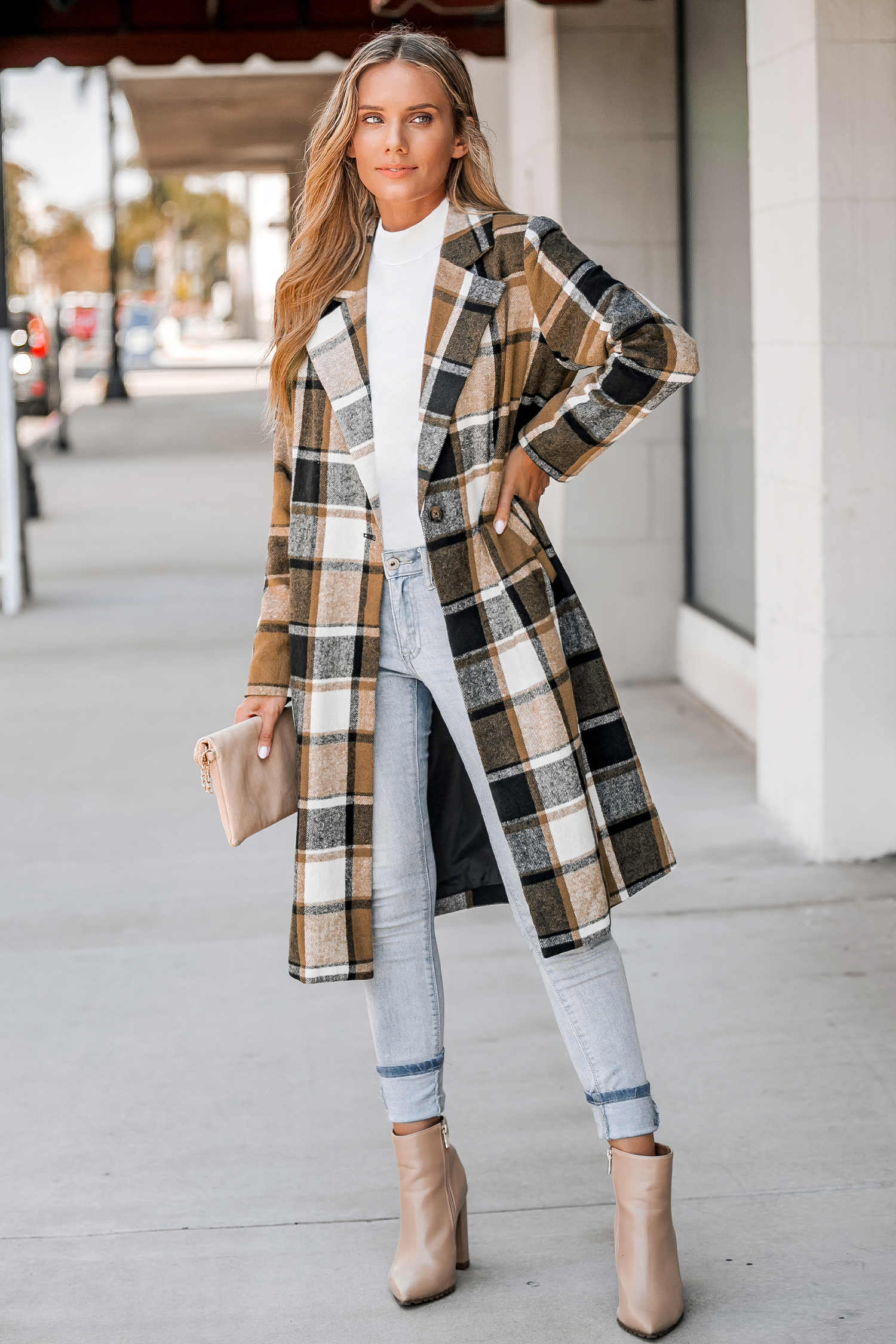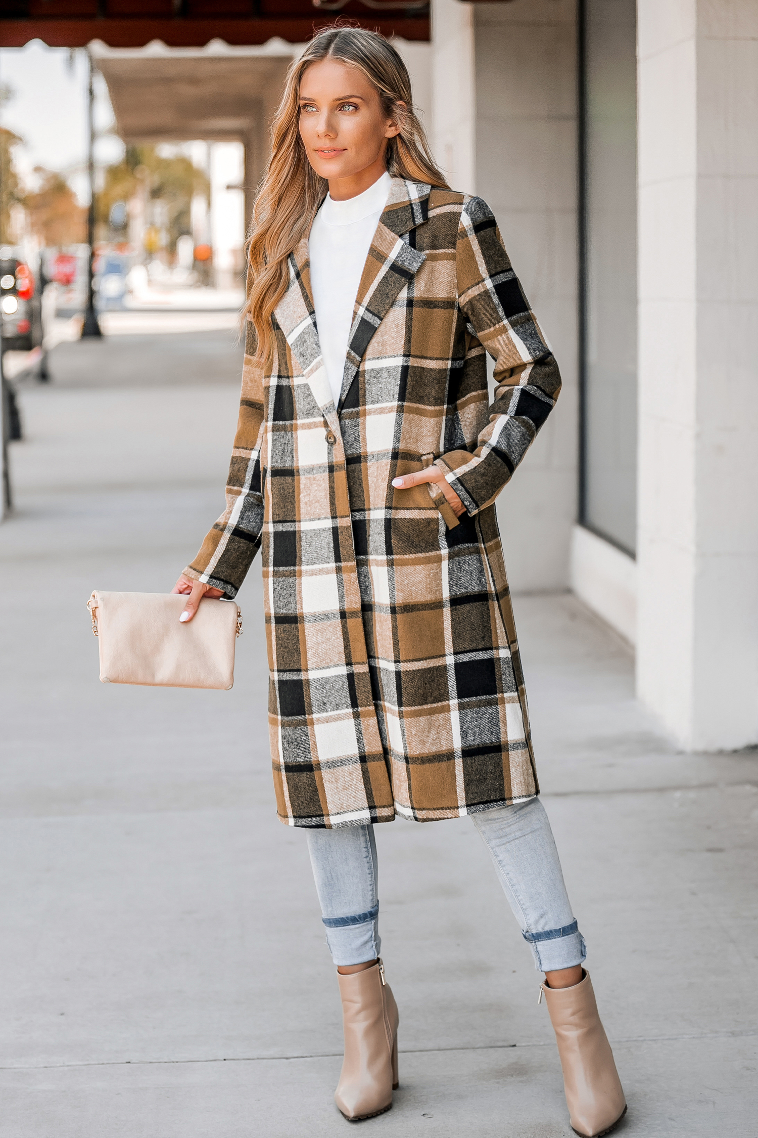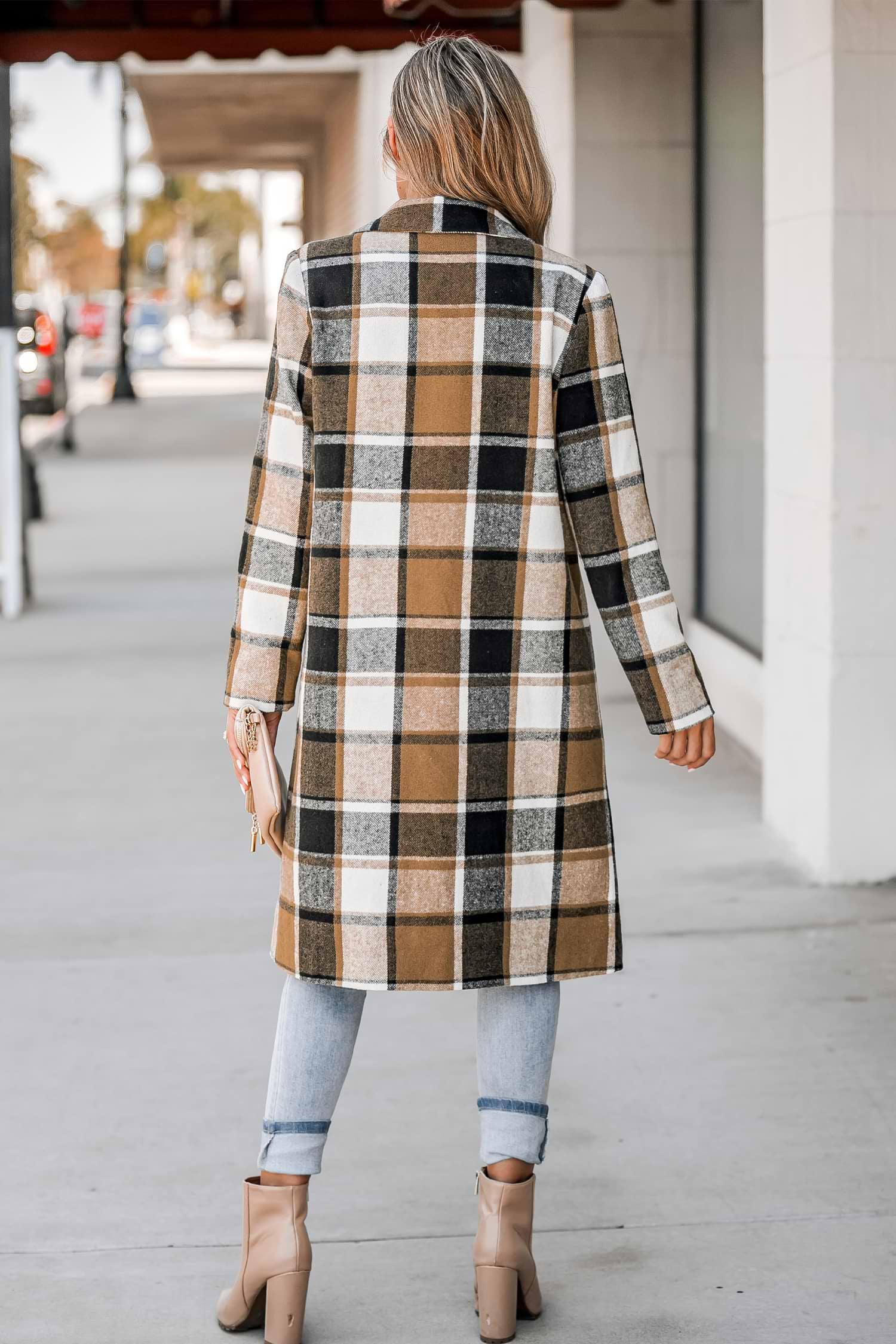 Plaid Button-Front Longline Coat