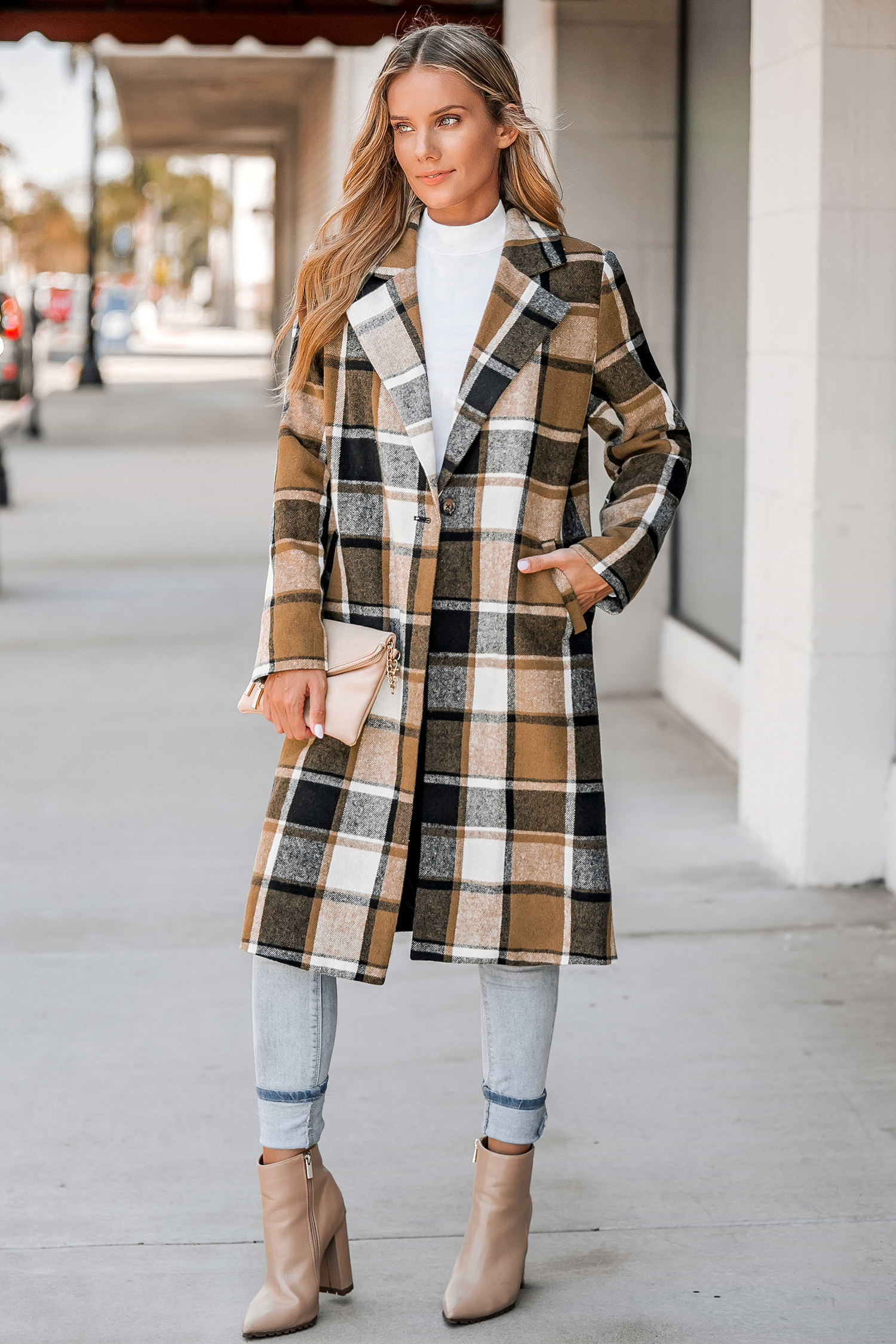 HomePlaid Button-Front Longline Coat