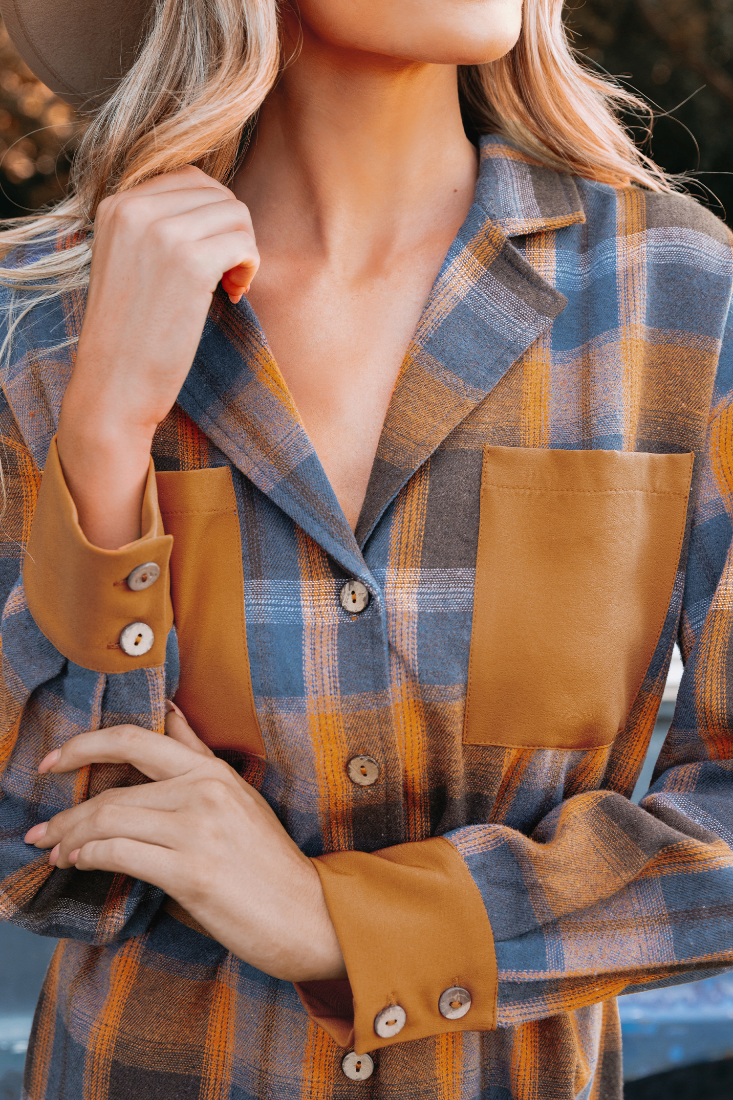 HomePlaid Button-Front Mini Shirt Dress