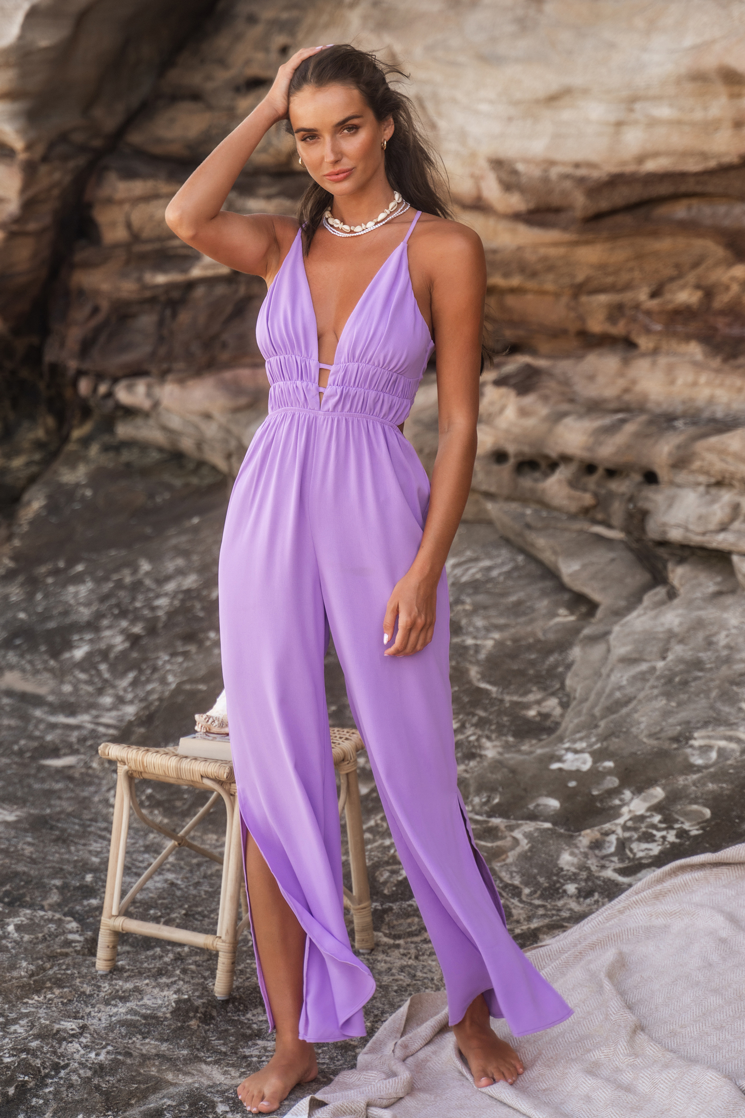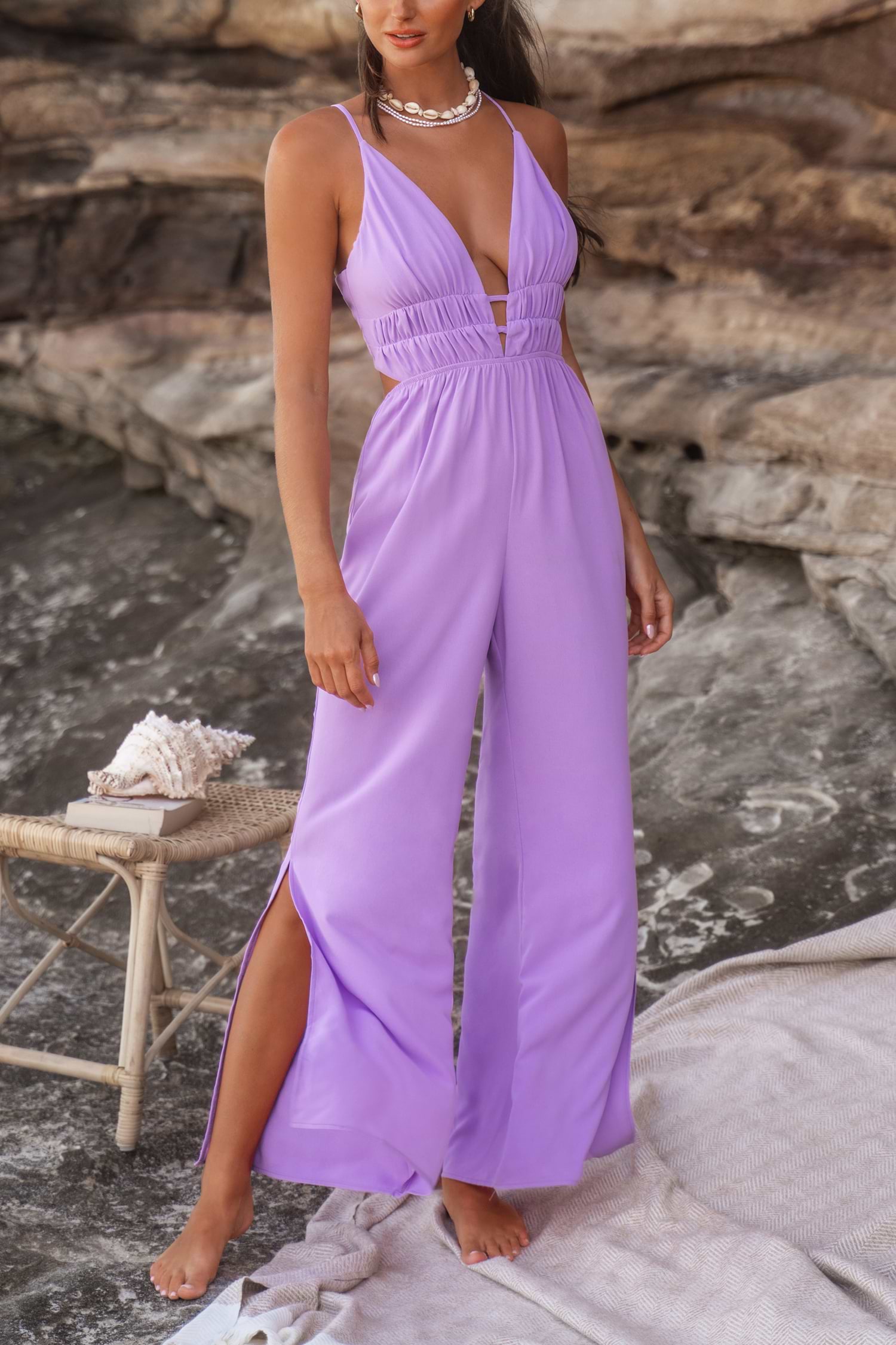 Toile Print Halter Neck Straight Leg Jumpsuit