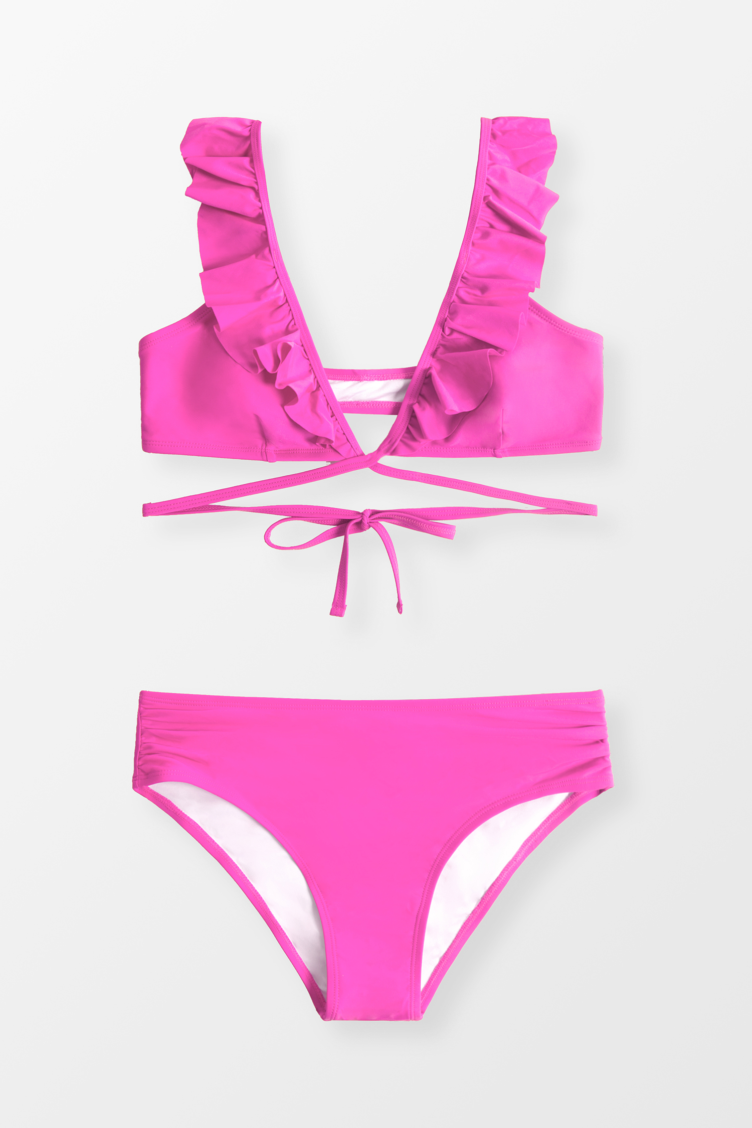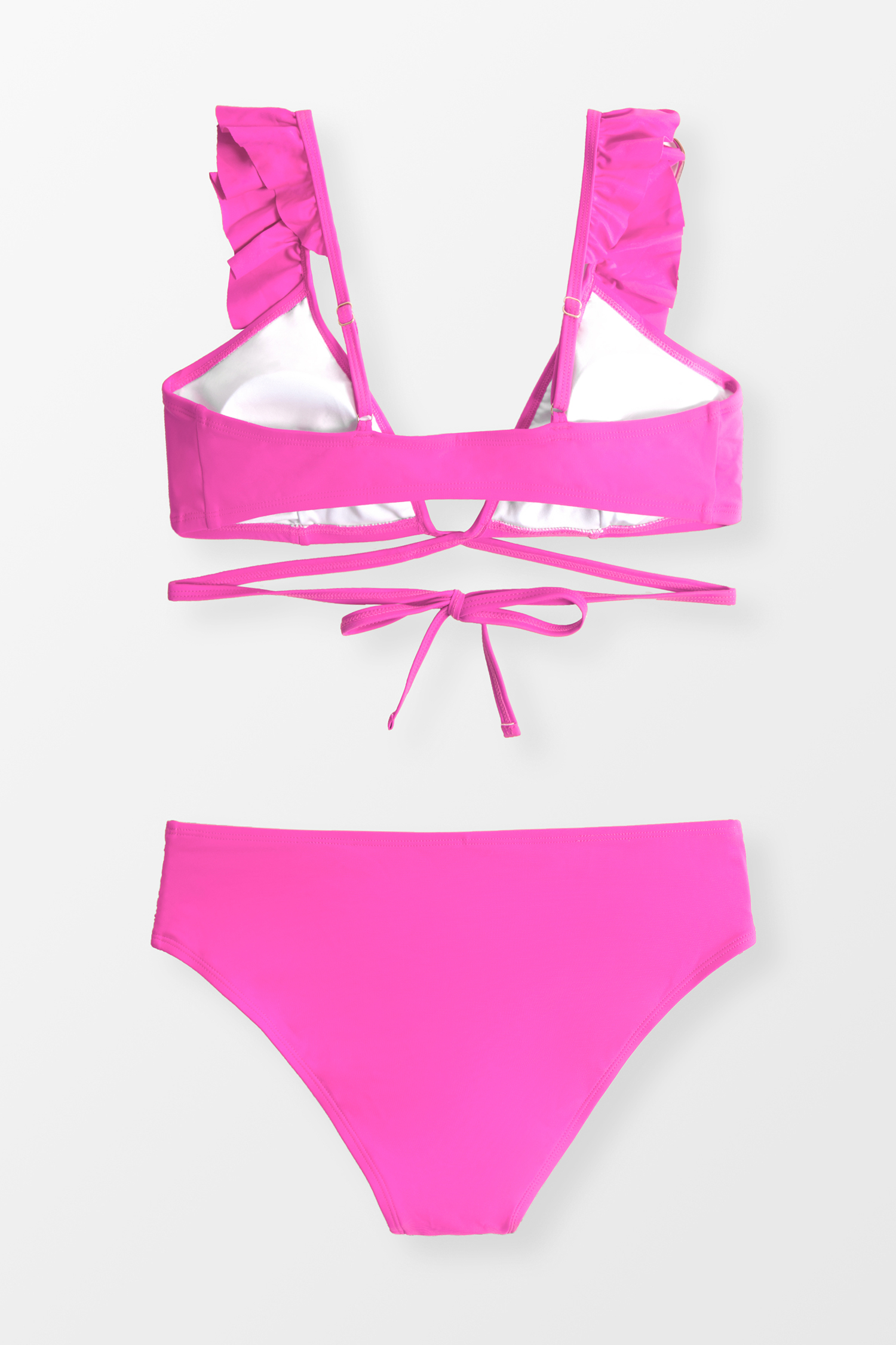 Pool Party Pink Ruffled Wrap Bralette & Hipster Bikini Set