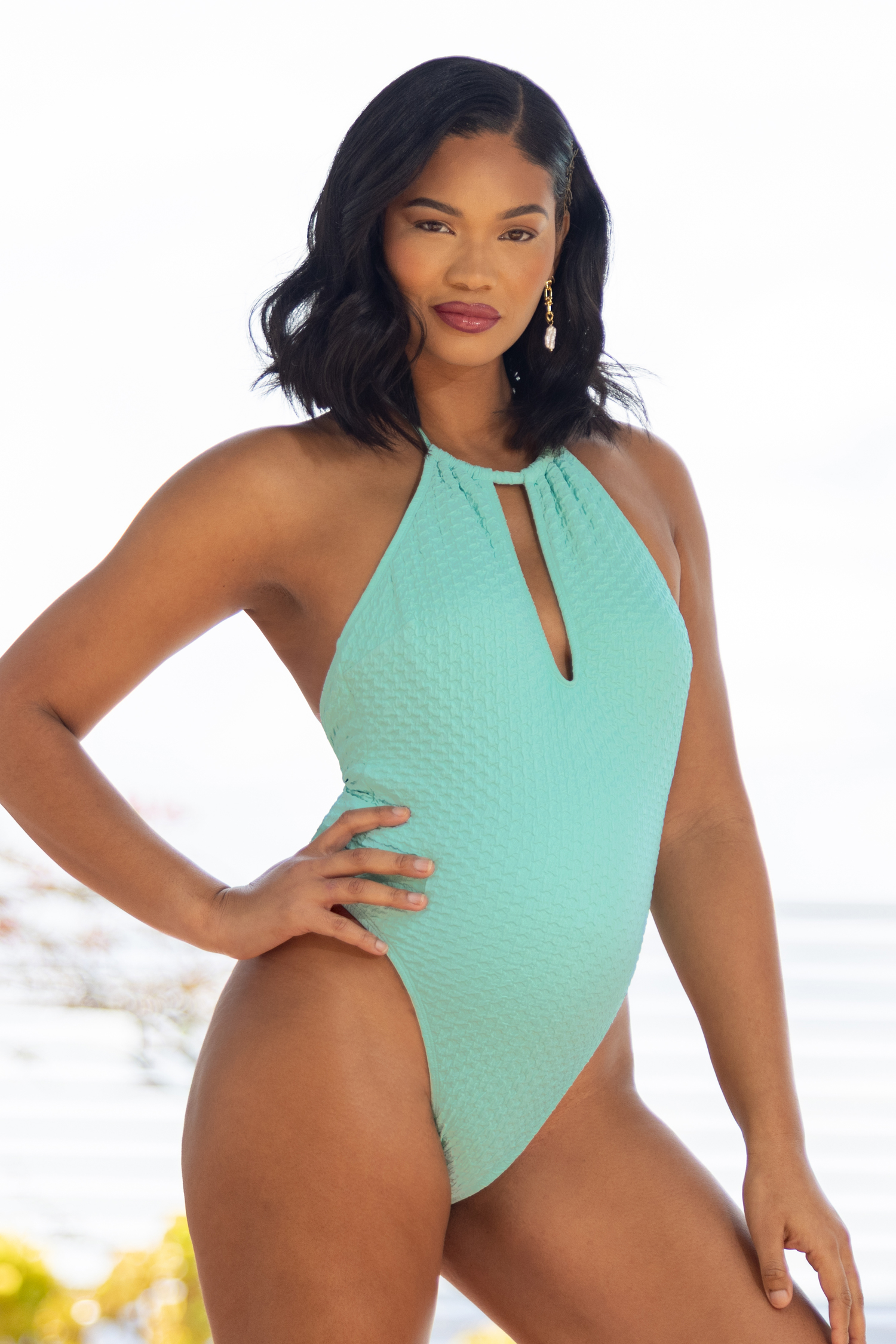 Pucker Up Texture Cutout Halter Ultra Cheeky One Piece Swimsuit