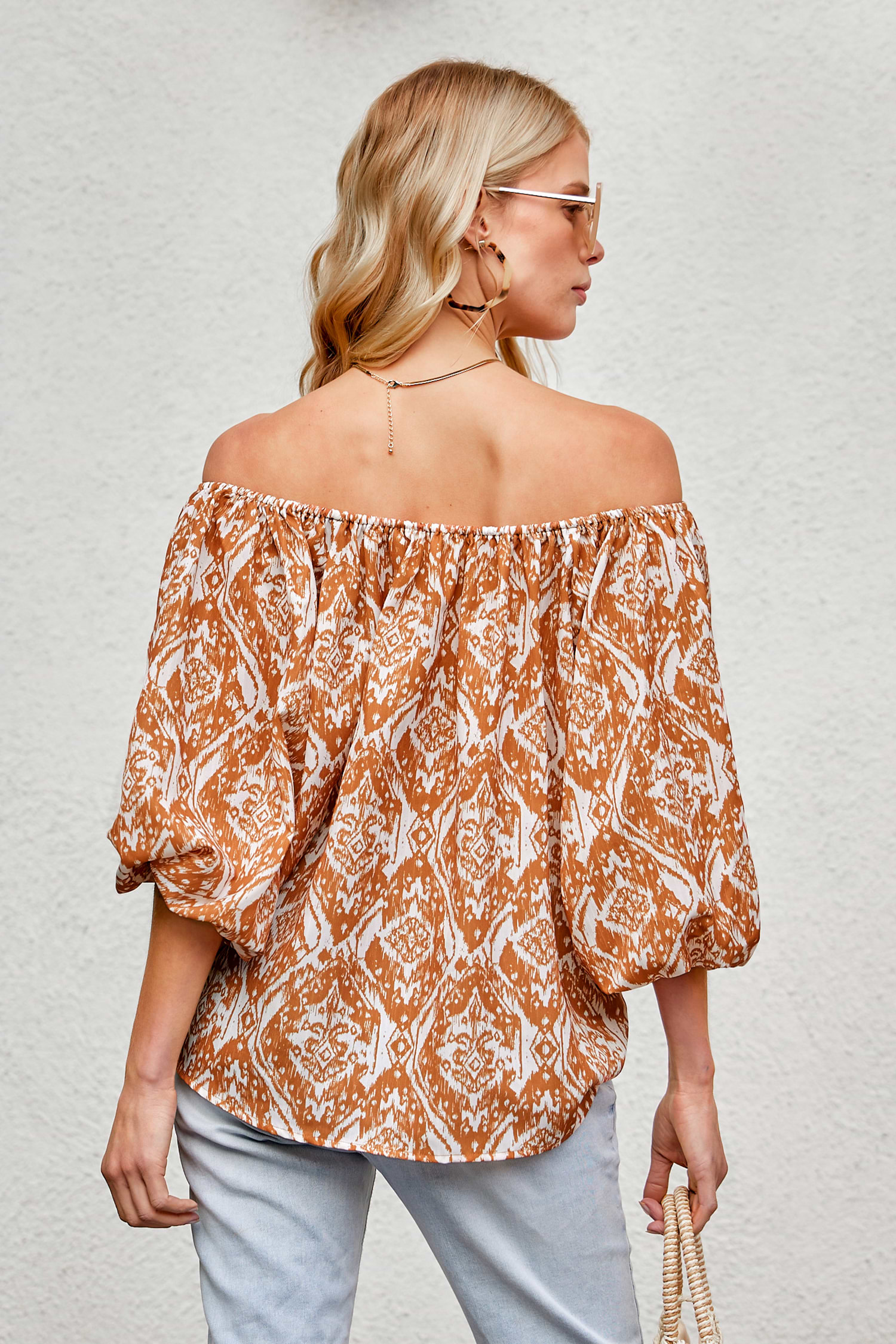 HomeQuerim Ornate Print Balloon Sleeve Top
