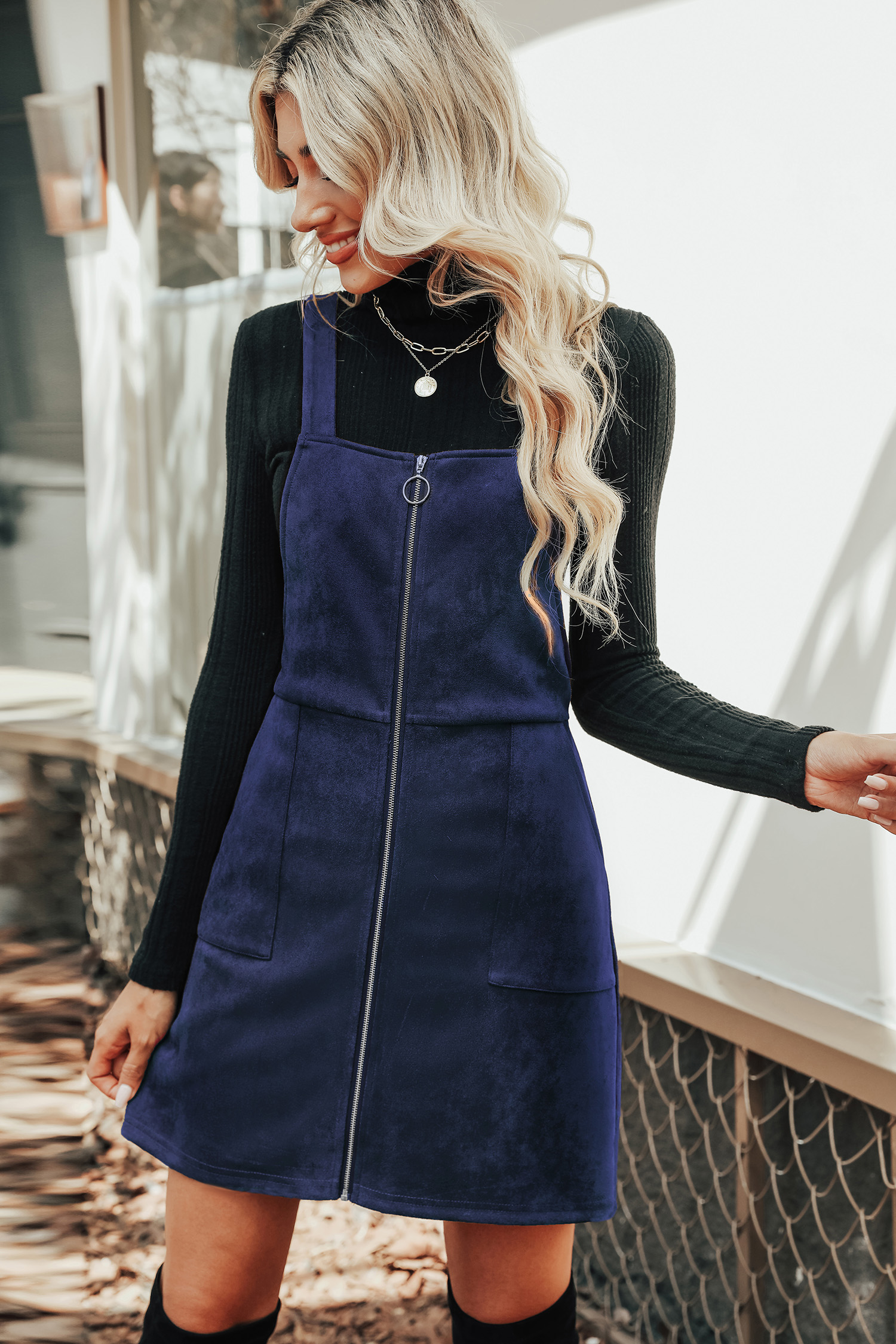 Blue Faux Suede Square Neck Sleeveless Skirtalls