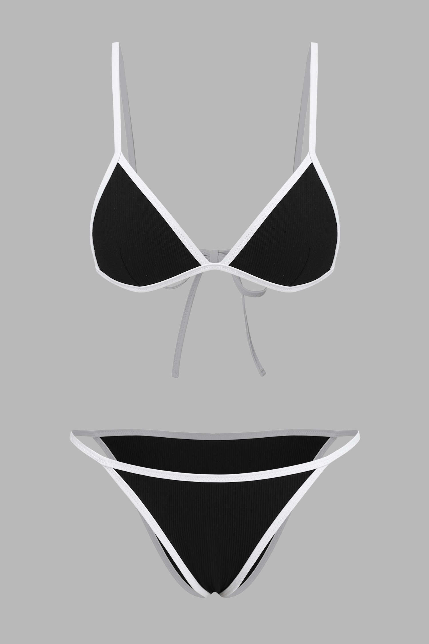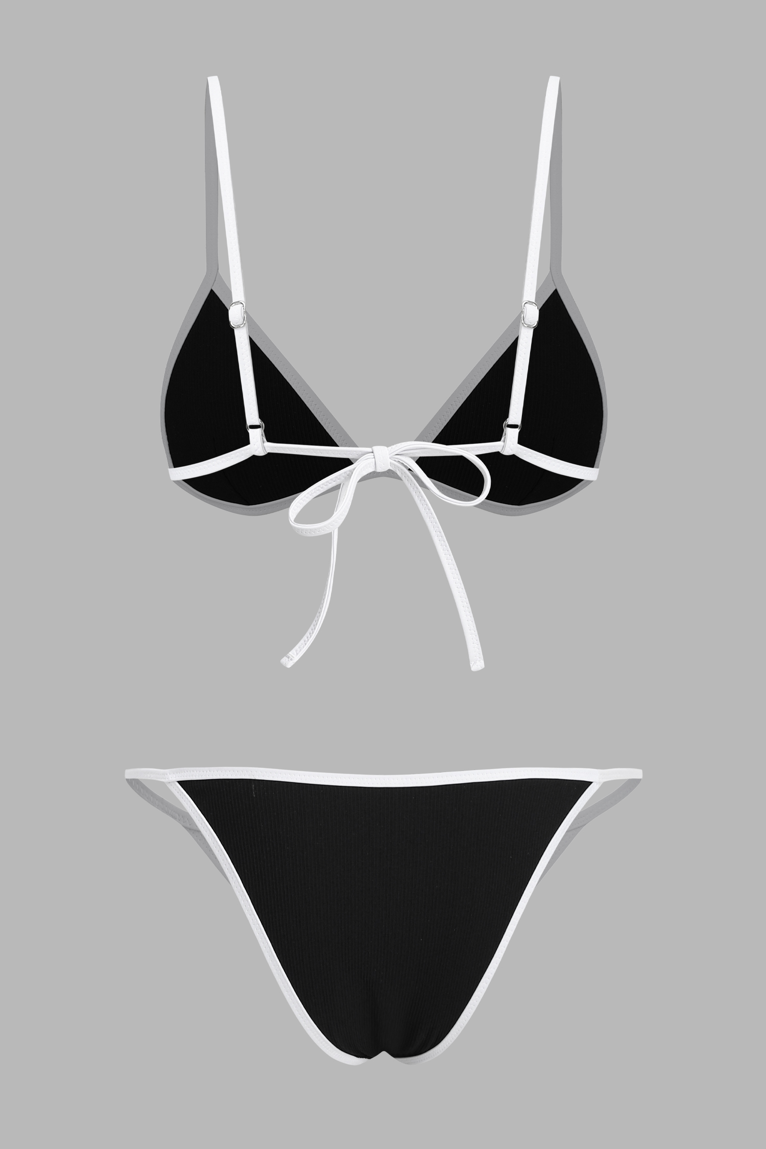 Ribbed Colorblock Triangle Top & Low-Rise Bottoms Set