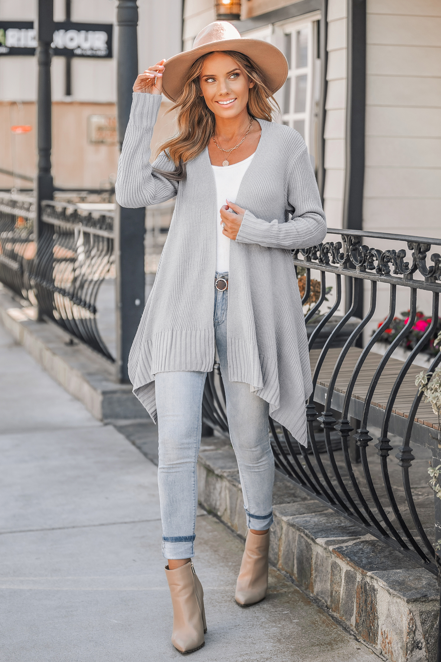 HomeRibbed Heathered Knit Open-Front Cardigan