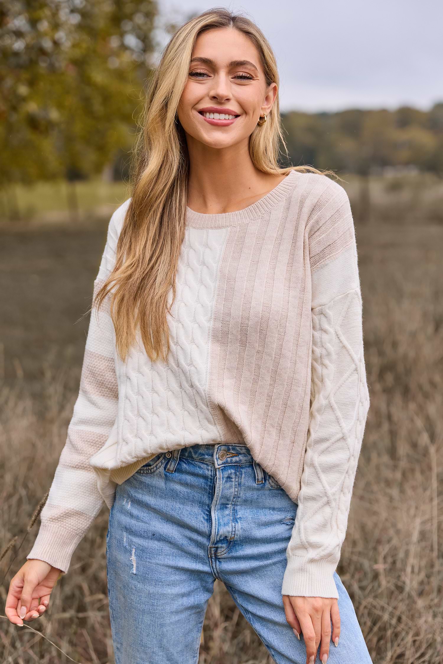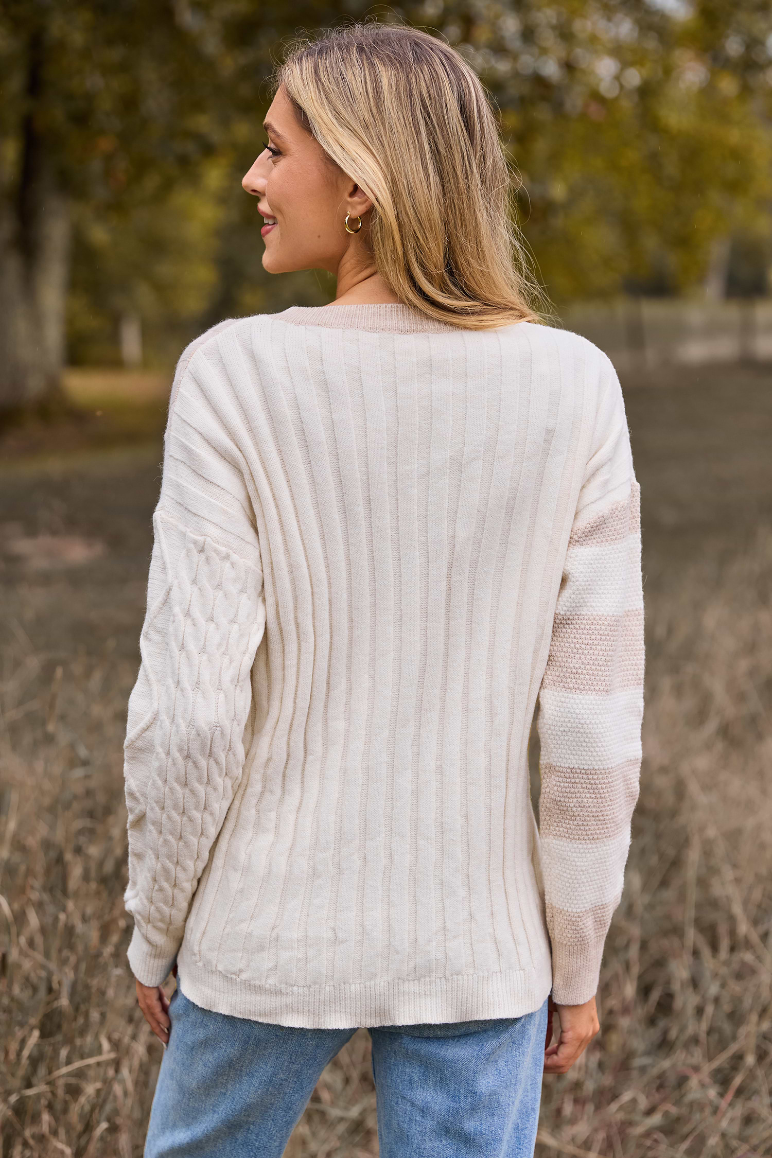 Round Neck Mixed Pattern Long Sleeve Sweater