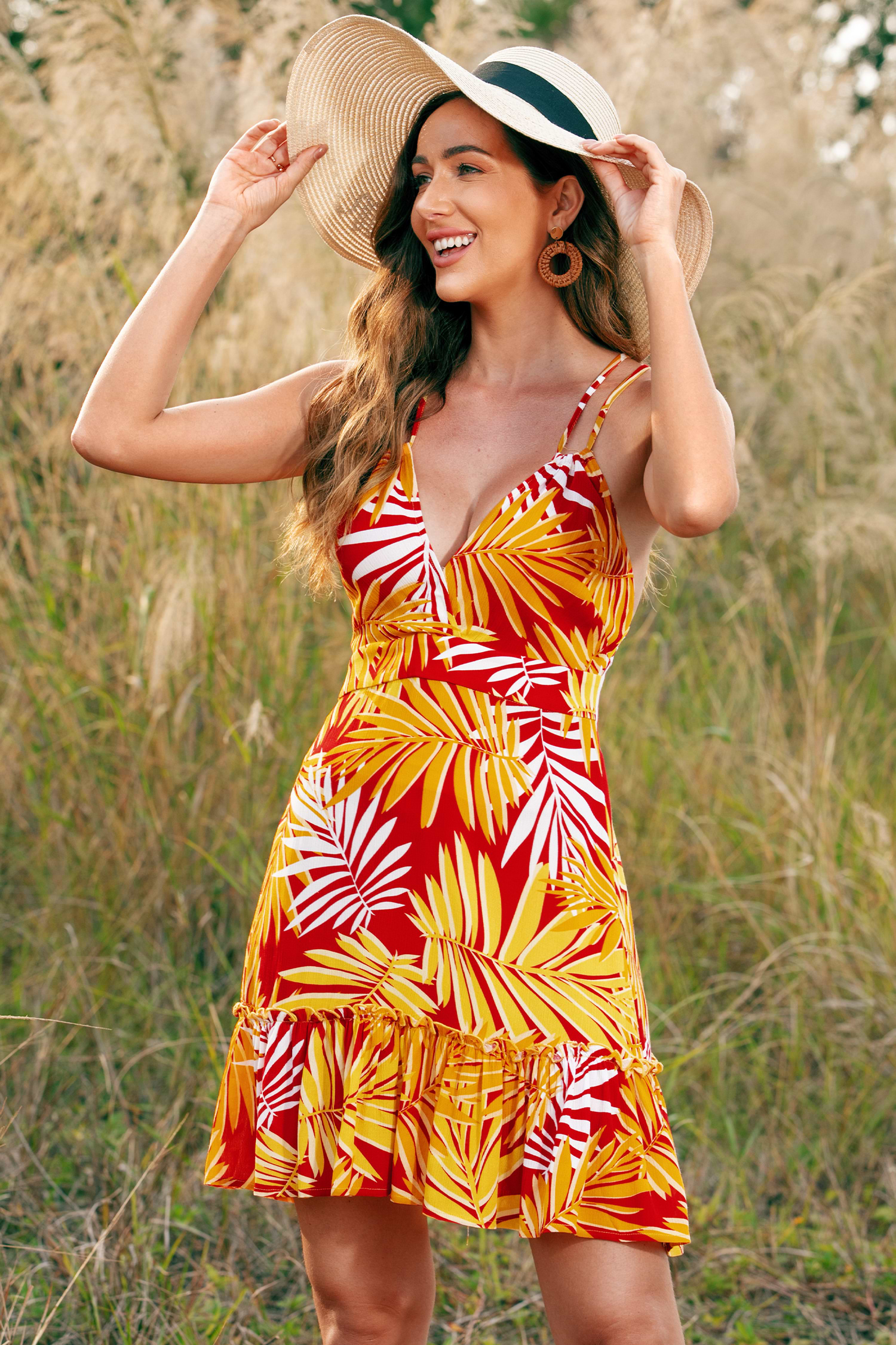 HomeRoyal Thin Strap Tropical Plants A-Shape Dress