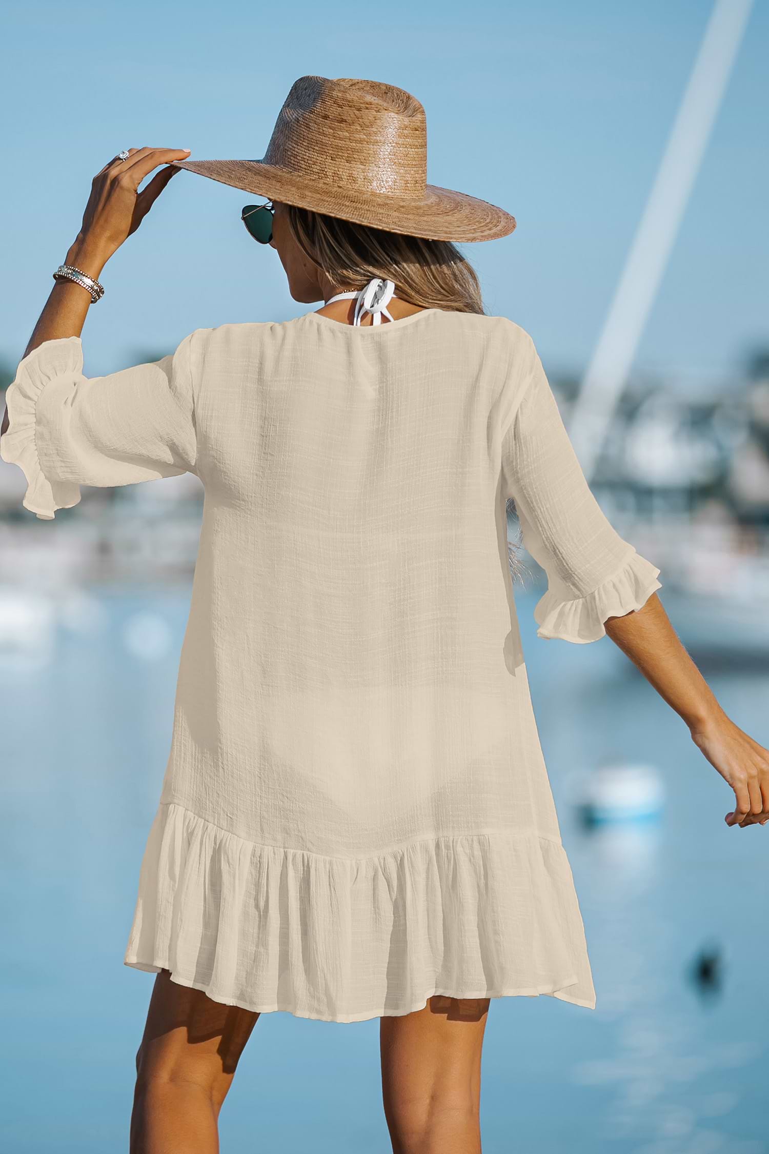 Ruffled Button-Front Cover-Up Dress