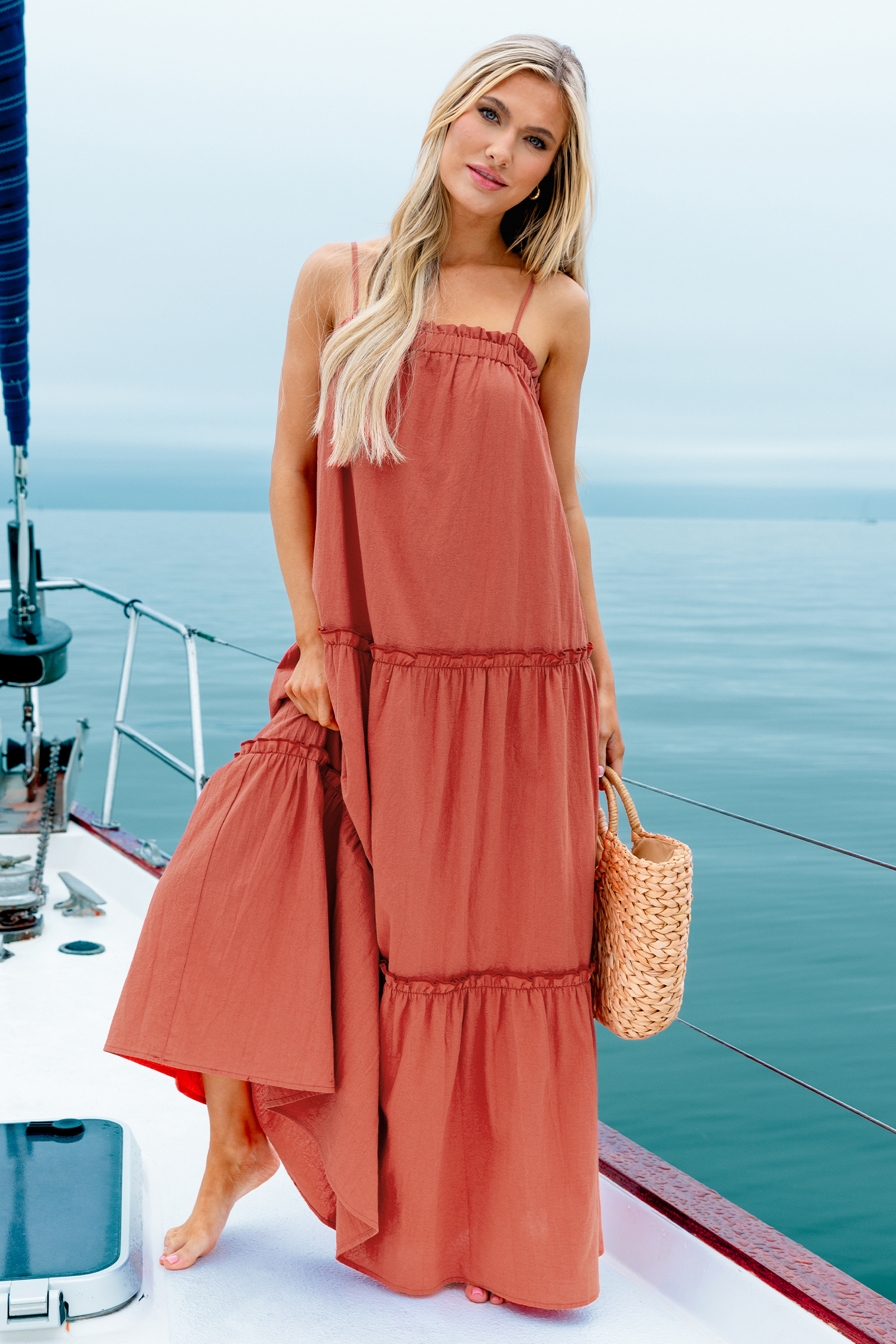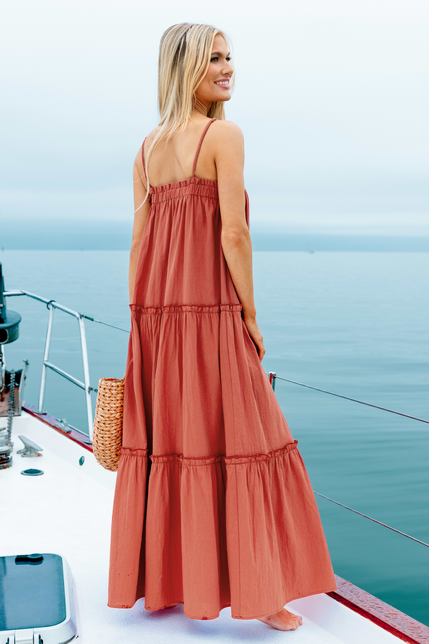 Rust Square Neck Sleeveless Maxi Dress