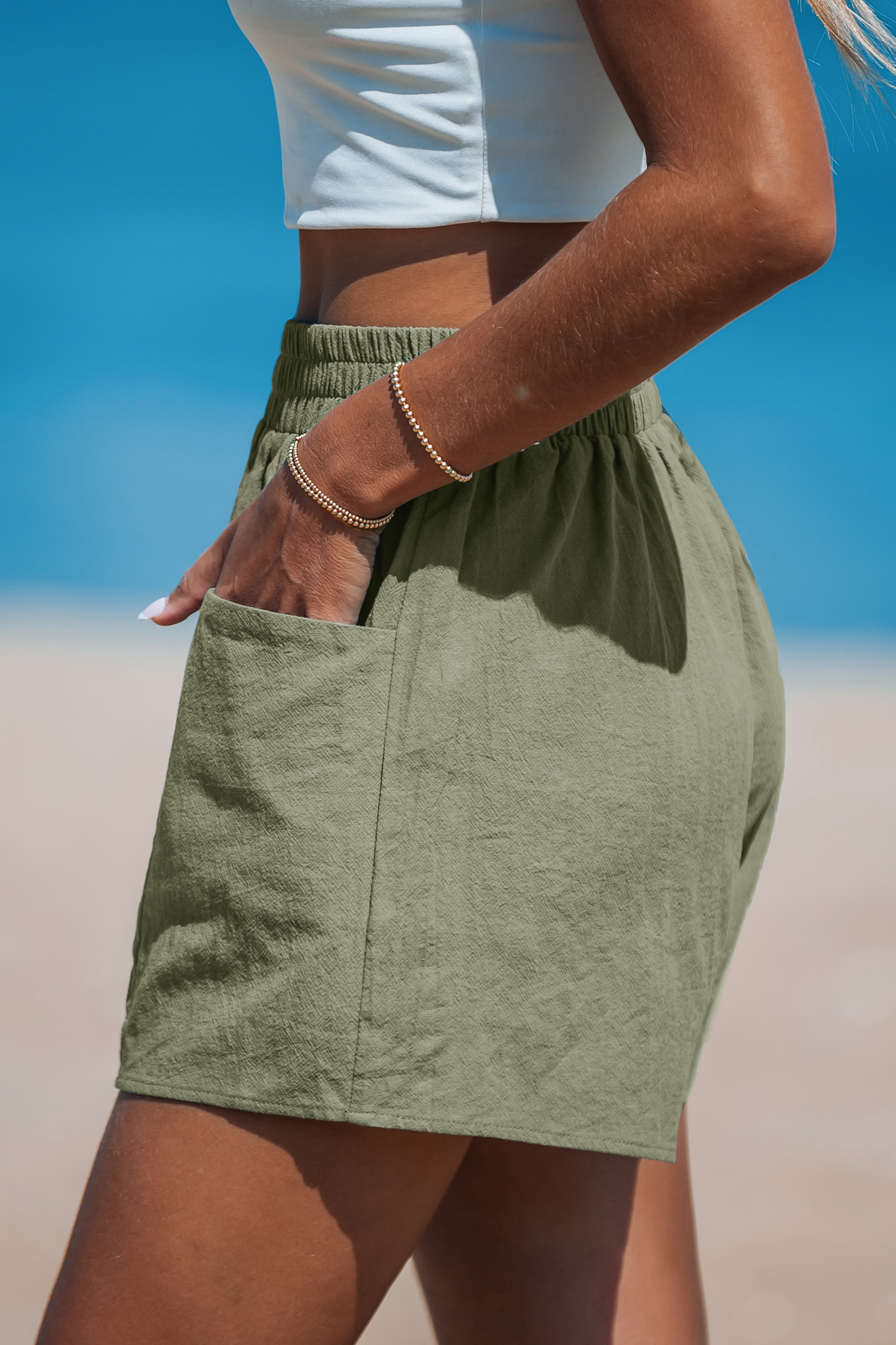 Sage Elastic Waist Patch Pocket Loose Leg Shorts