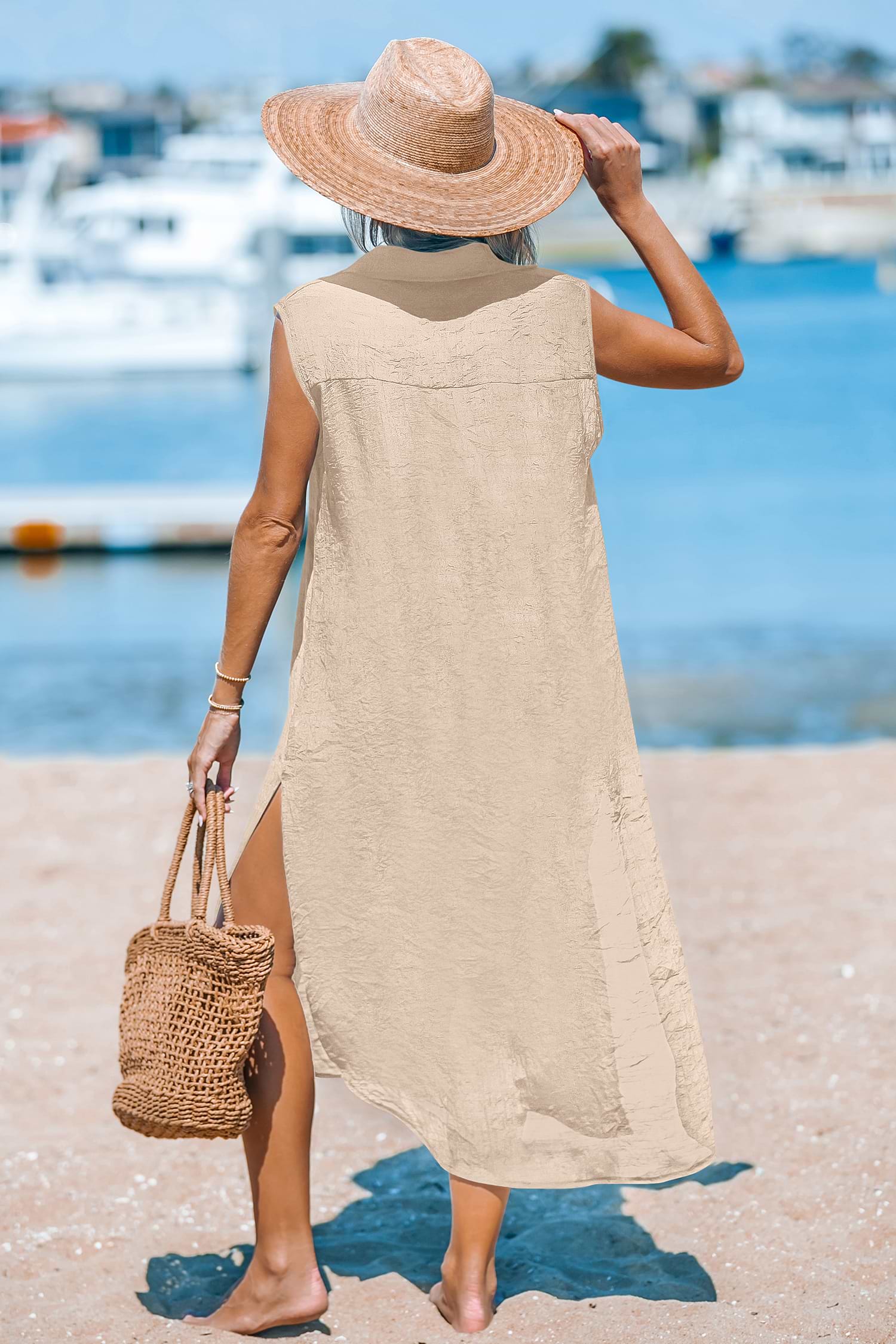 HomeSerene Breeze Beige Cover-Up Midi Dress