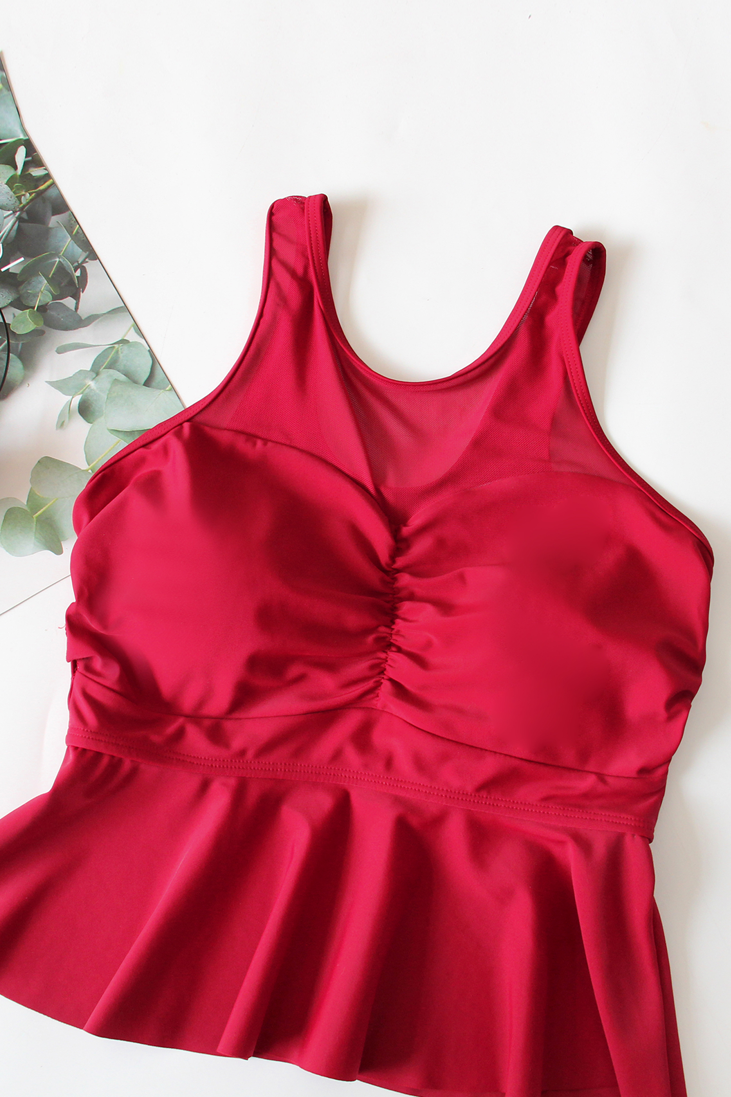 Sheer Mesh Ruched Tankini & Tropical Print Set